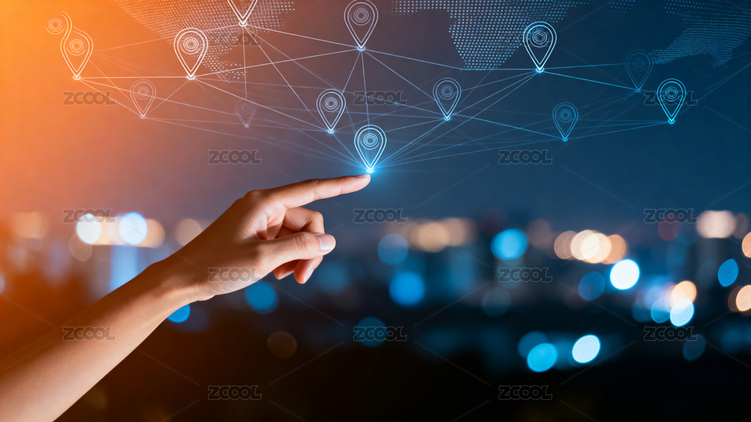 科技定位图标与城市夜景