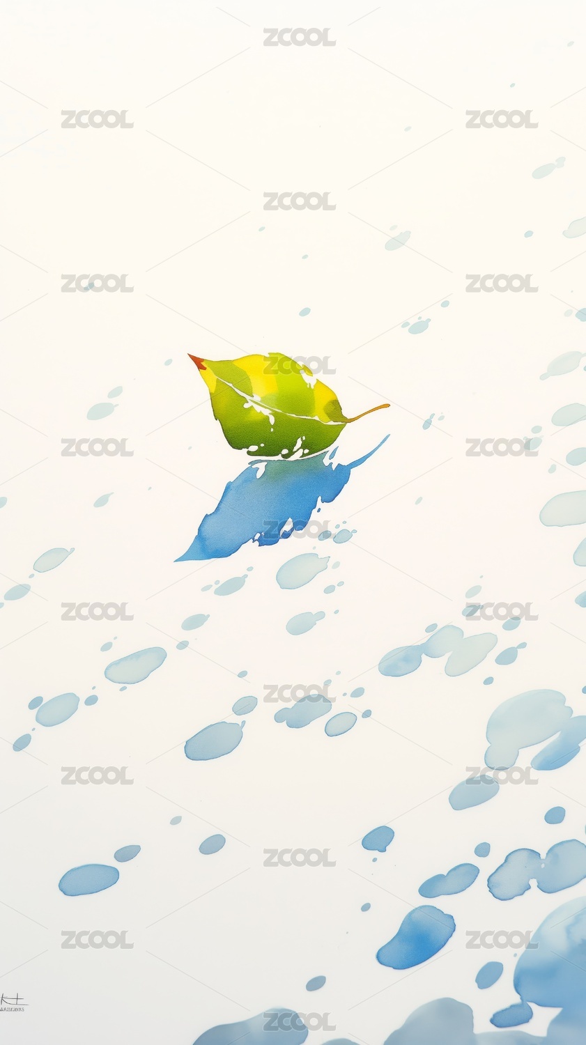 清新下雨天气水面有波纹涟漪的雨天背景插画