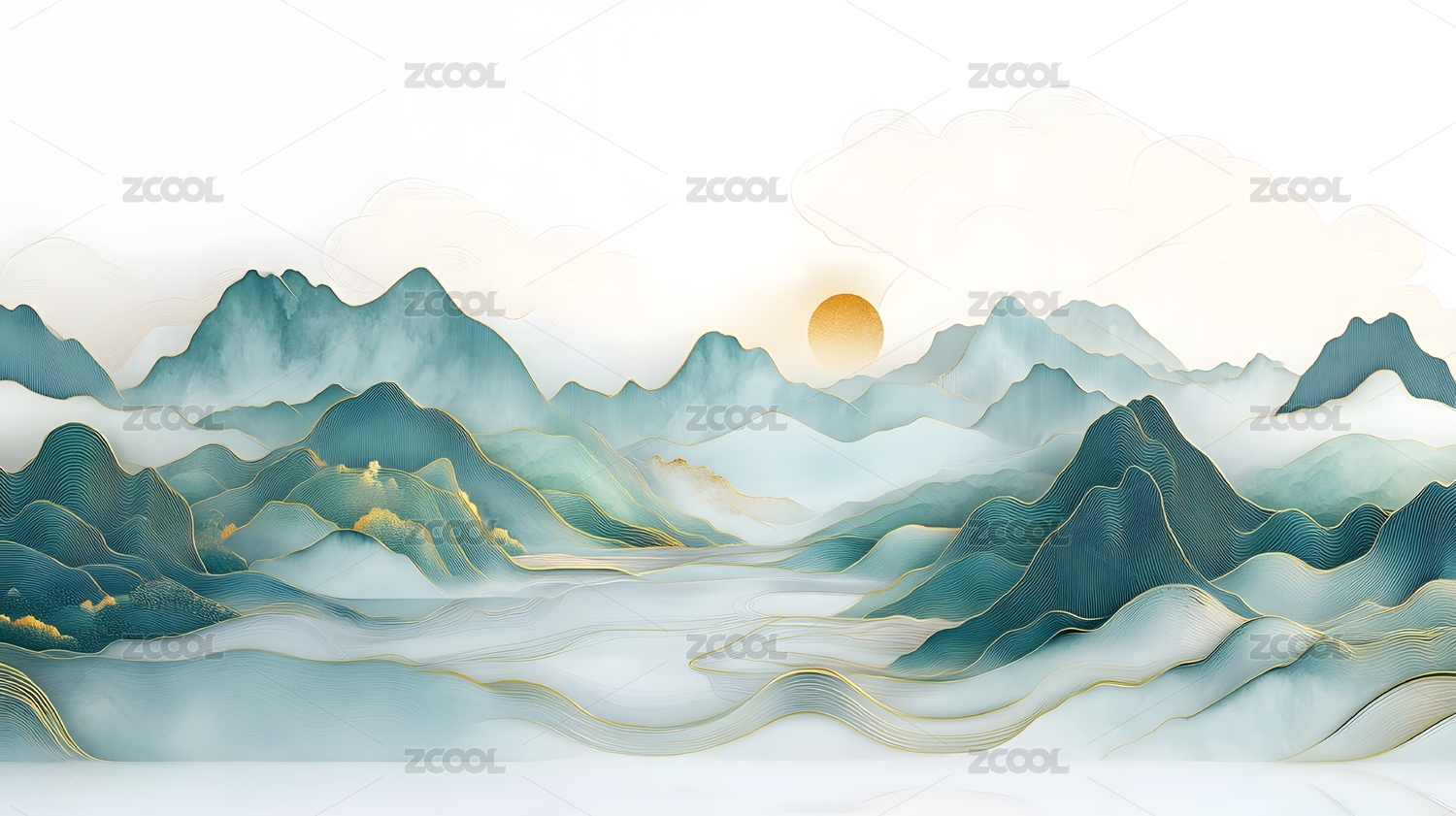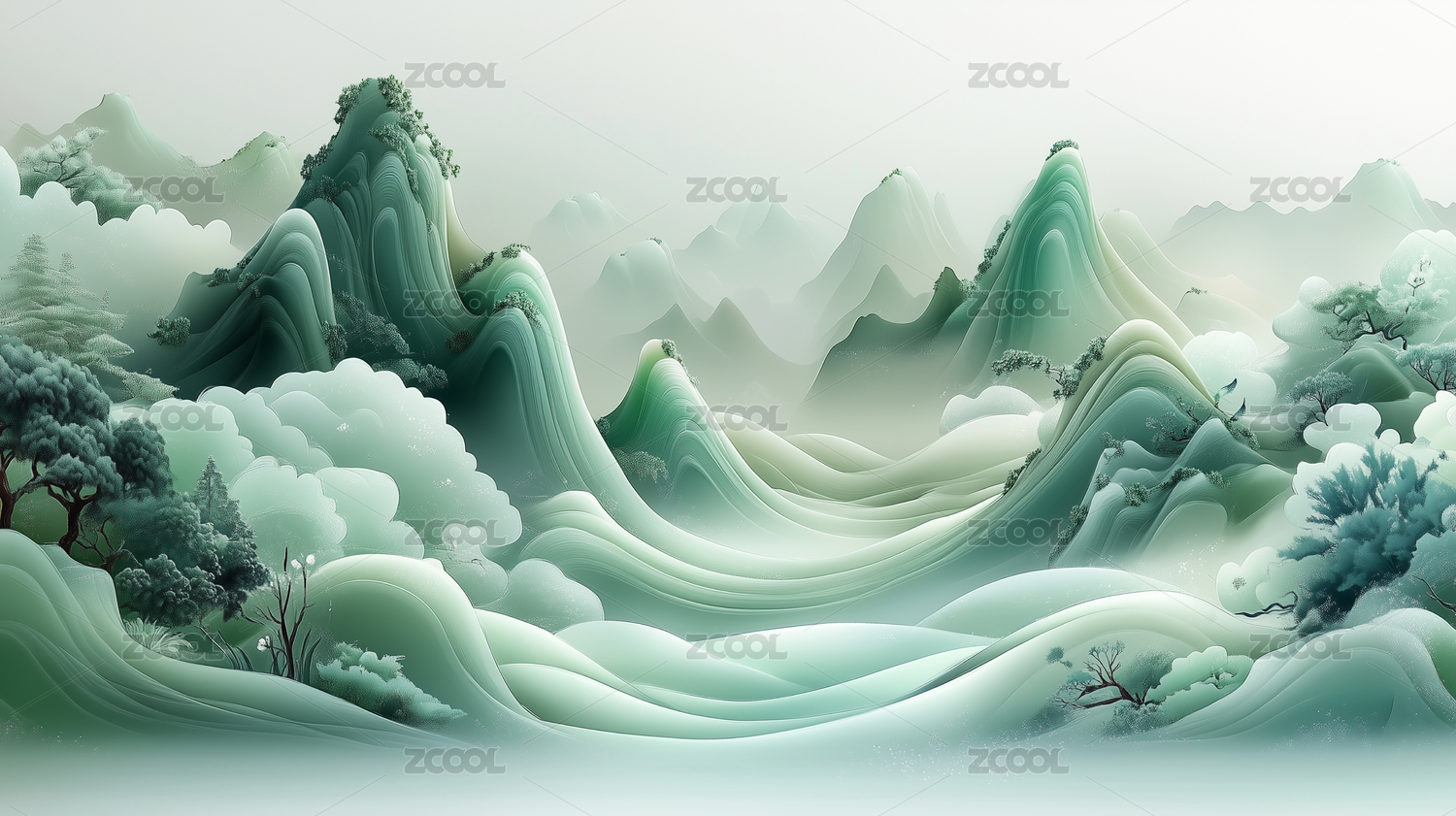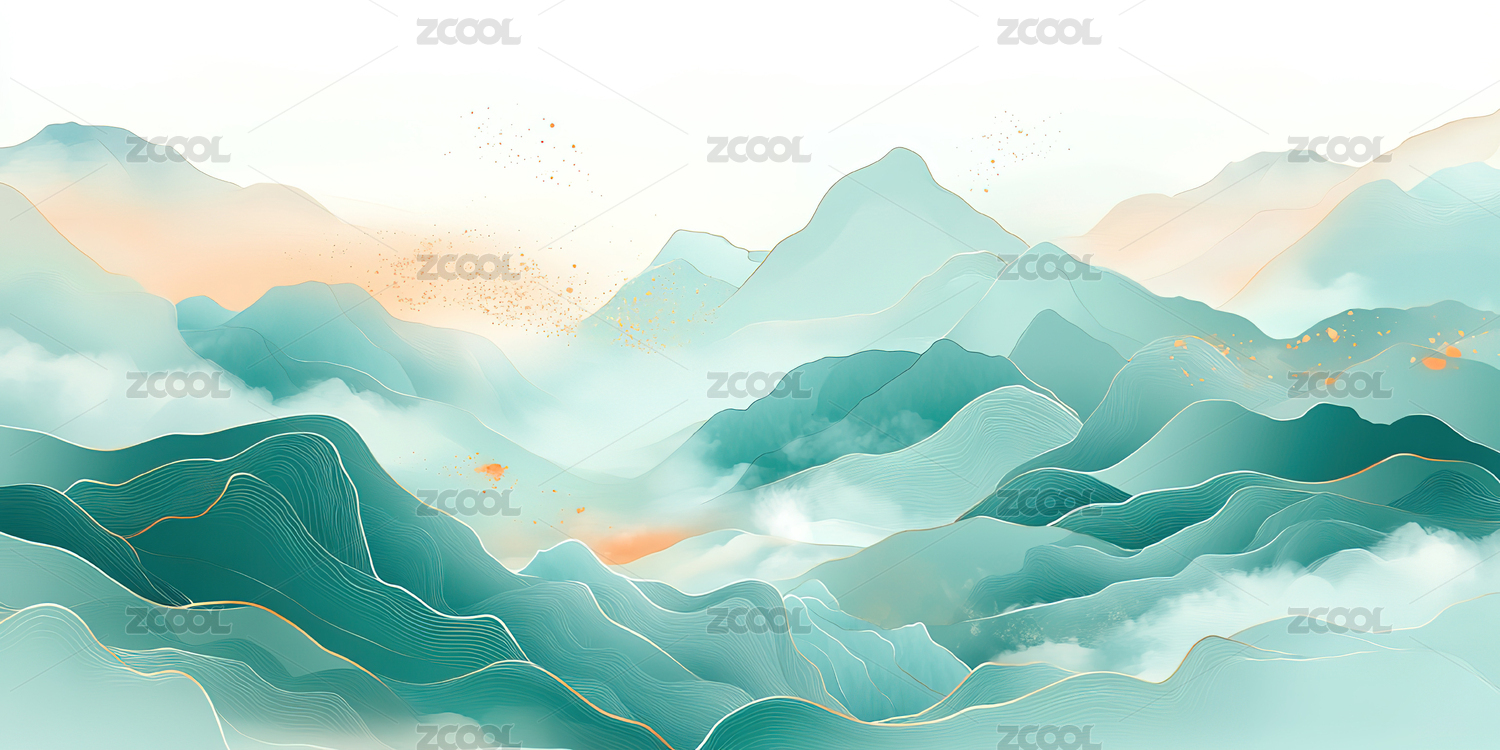 青绿山水云雾缭绕