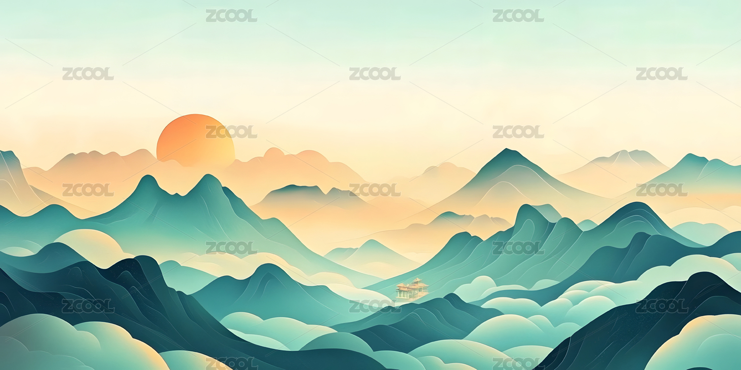 古典群山风景极简插画