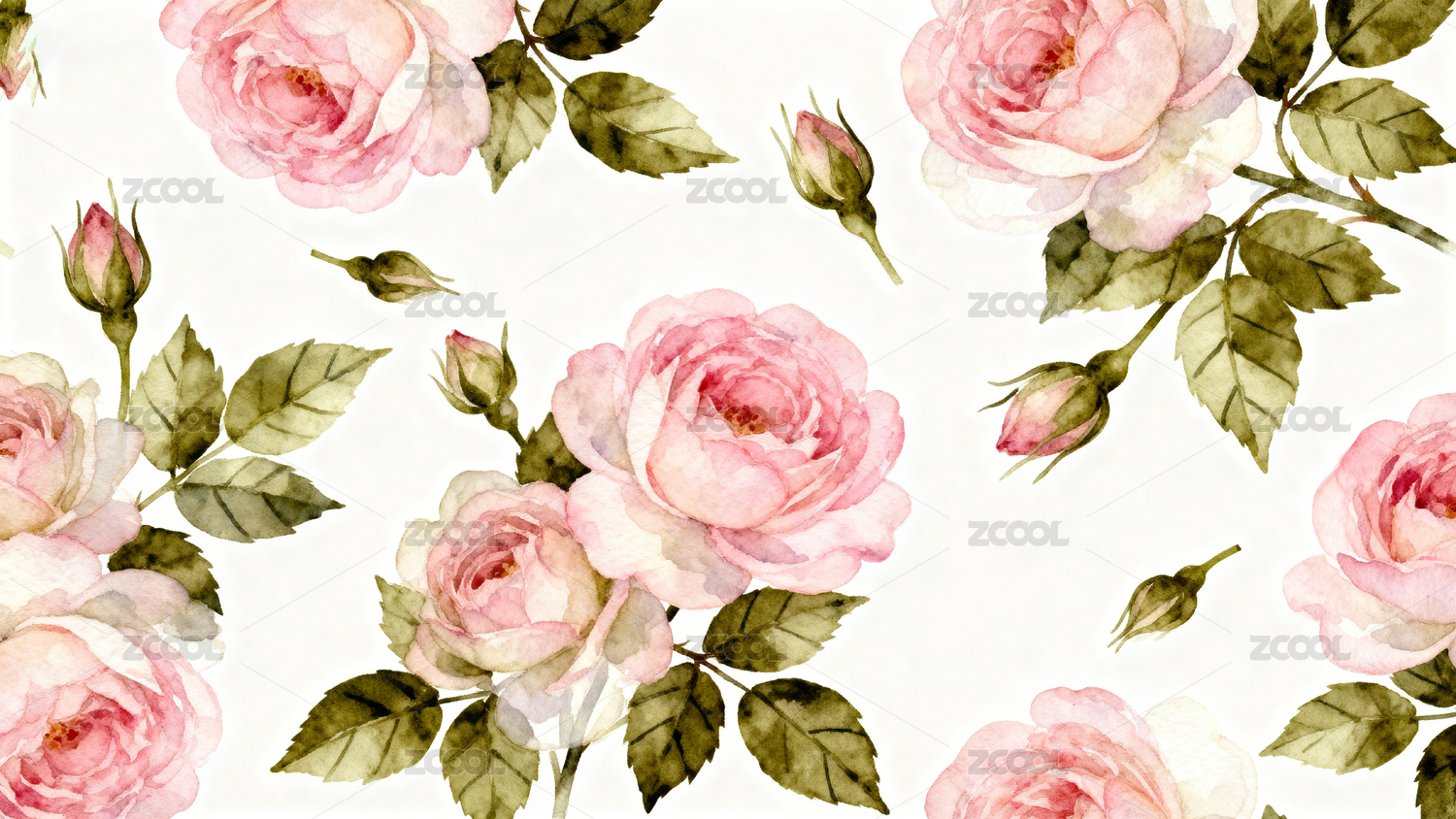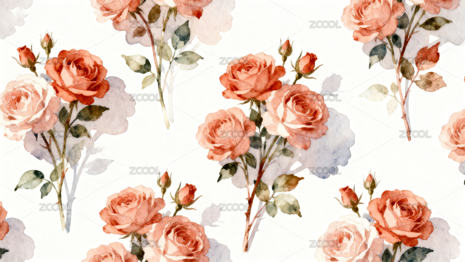 水彩玫瑰花卉图案