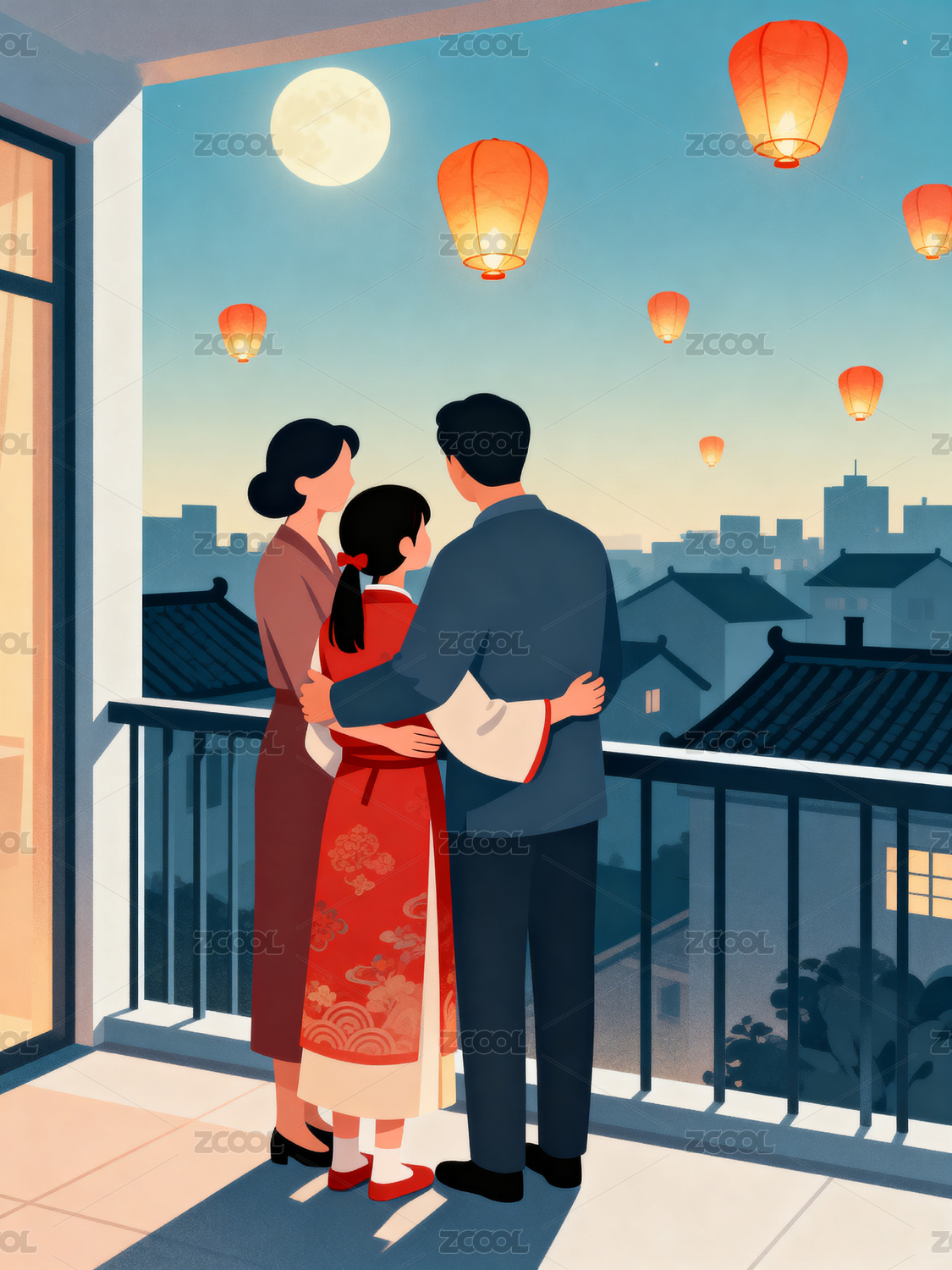 装饰,灯光,节日,灯笼,光影,家人,团圆,微笑,天空,建筑