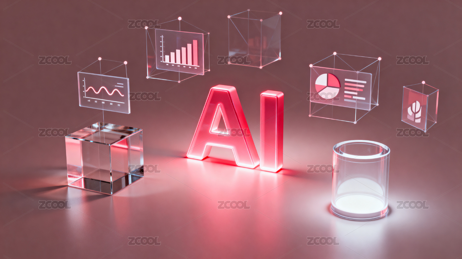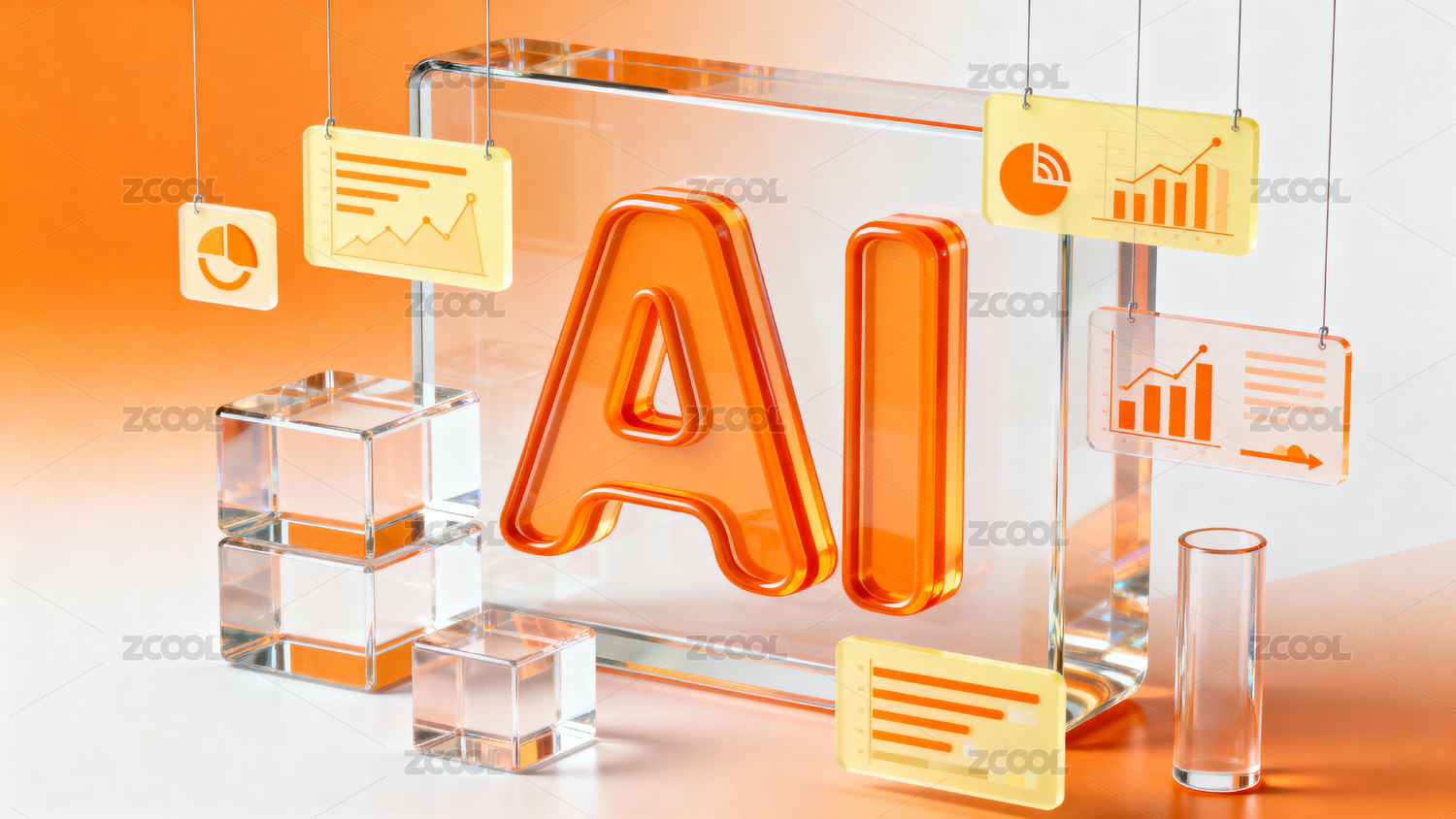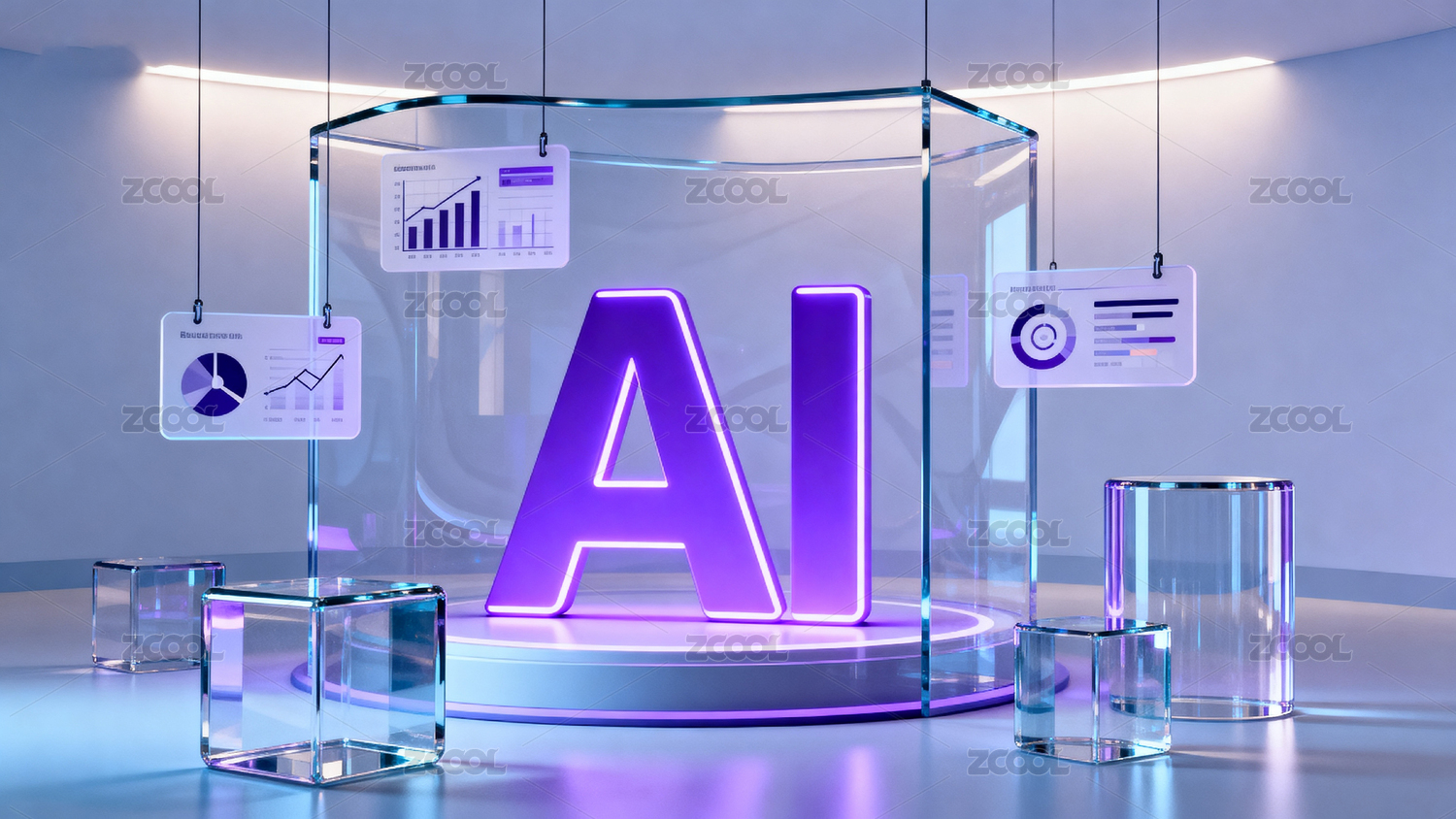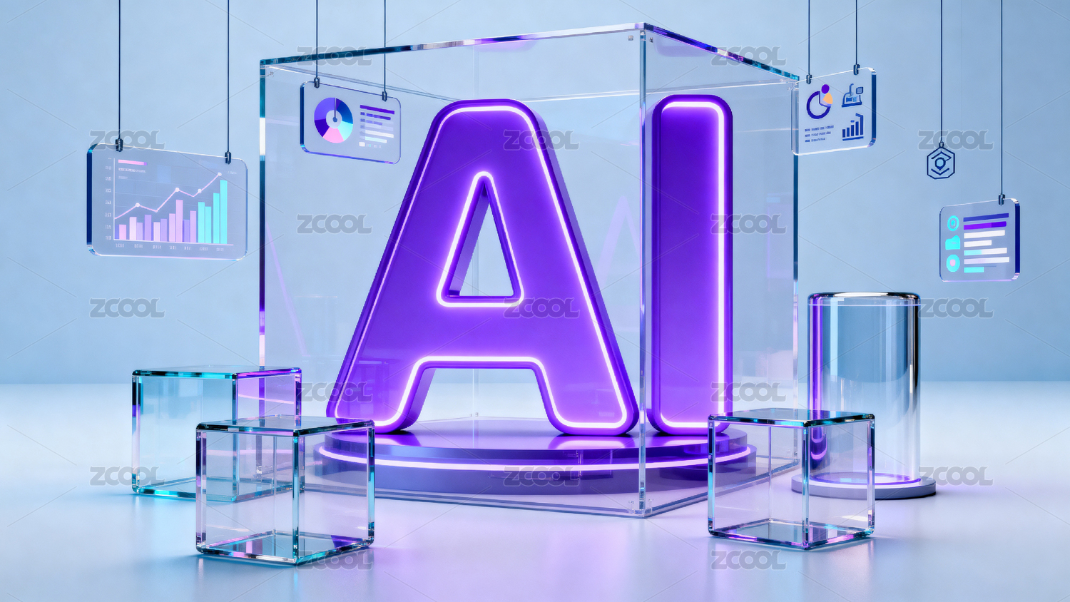 紫色AI字母与数据图表展示
