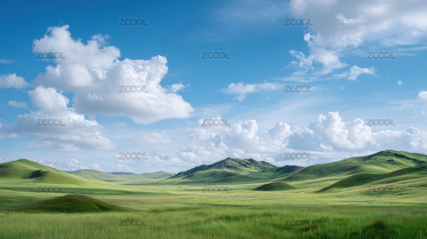 蓝天白云下的广袤草原美景