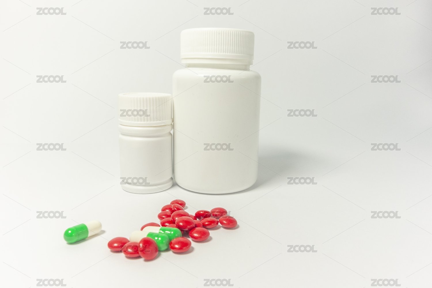卡通淡蓝色立体医学药品药瓶胶囊模型插画