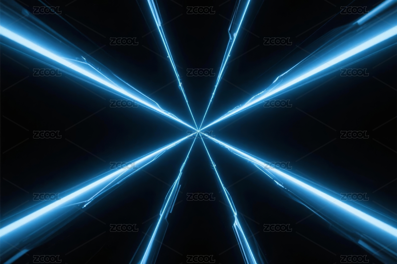 蓝色光束交错的抽象光影画面