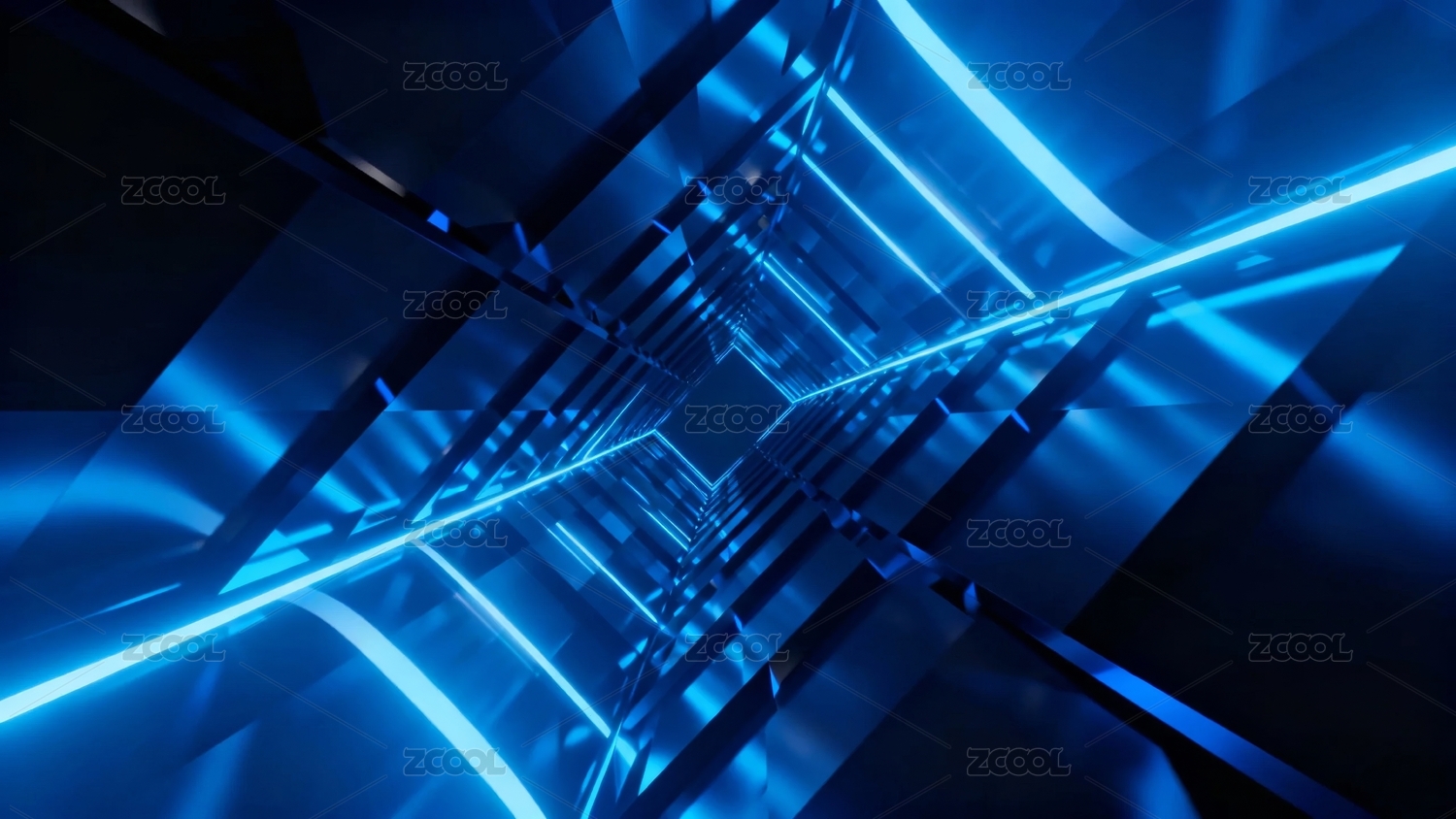 蓝色光束构成的科技隧道