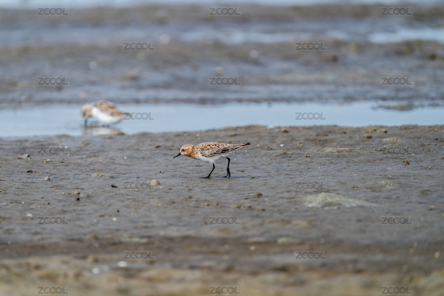 于湿地上觅食甲壳类和软体动物的红颈滨鹬鸟