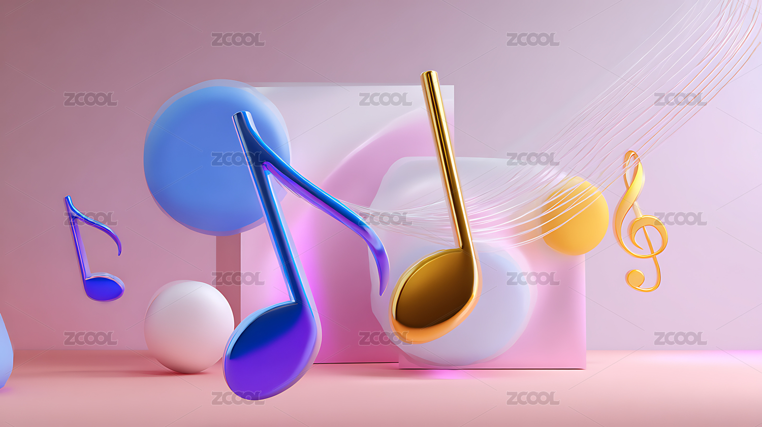 简约渐变3D卡通音乐符号装饰背景
