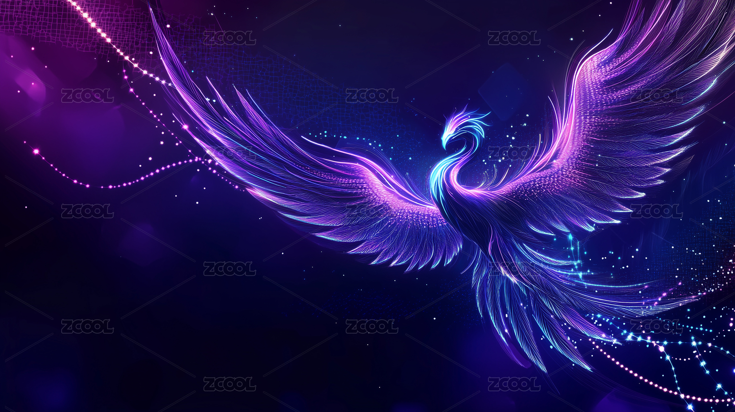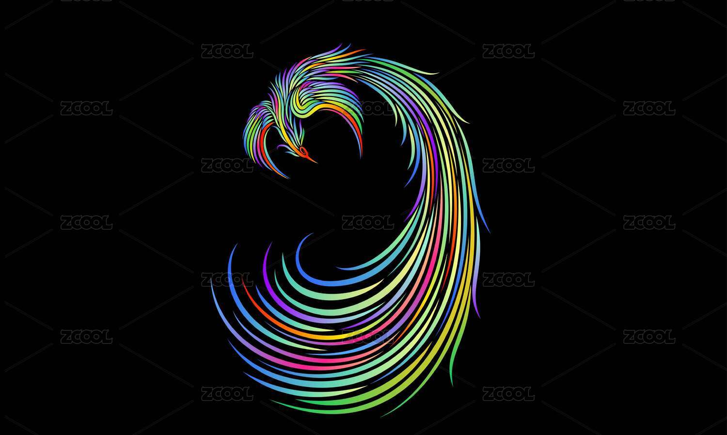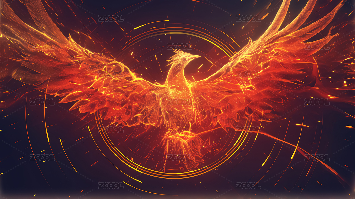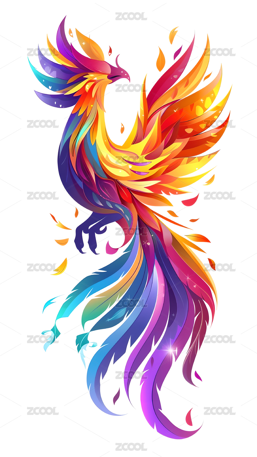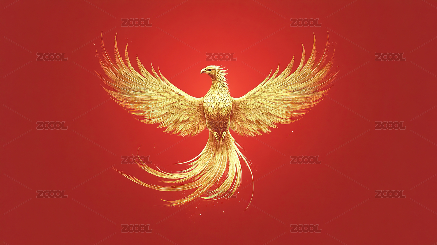 国潮动物凤凰展翅中式传统吉祥纹样色彩明亮