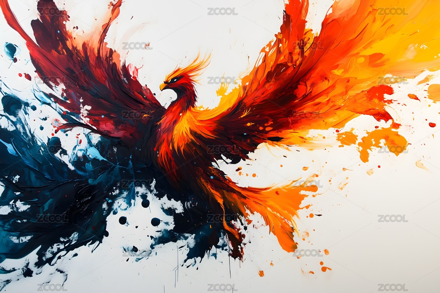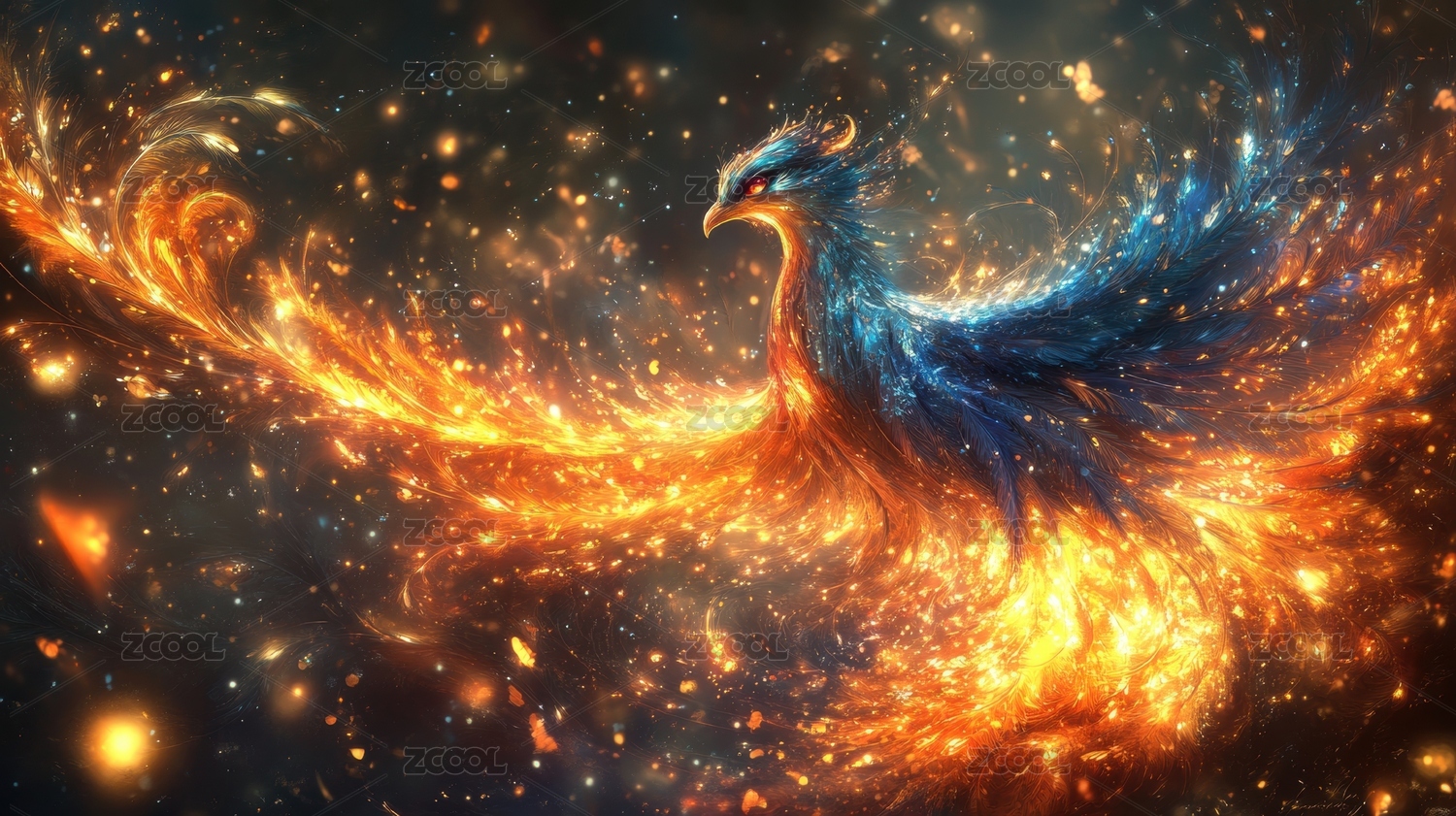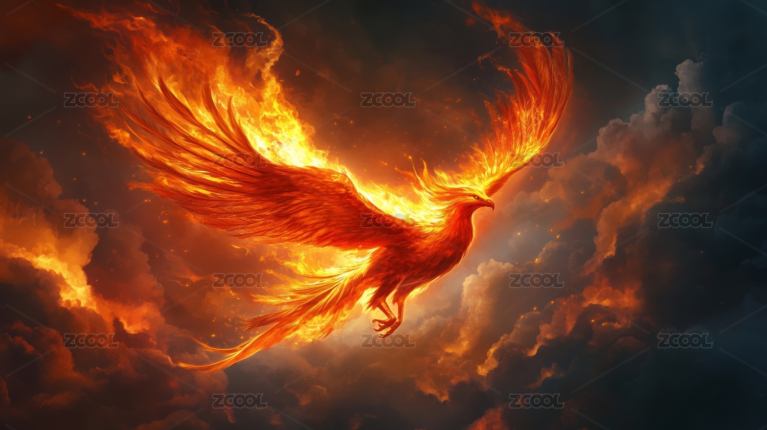 山海经神话传说天空飞翔火凤凰3D立体插画