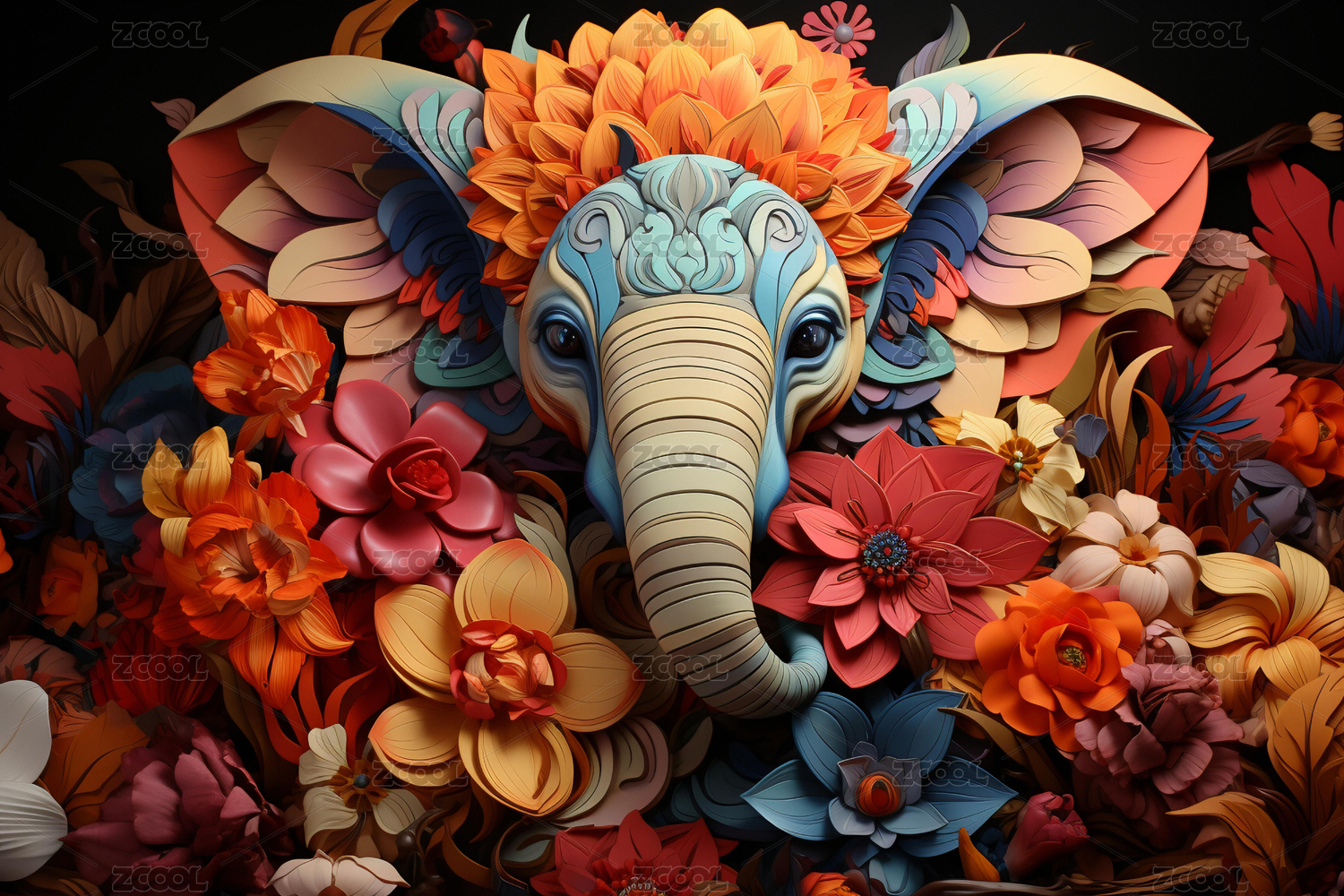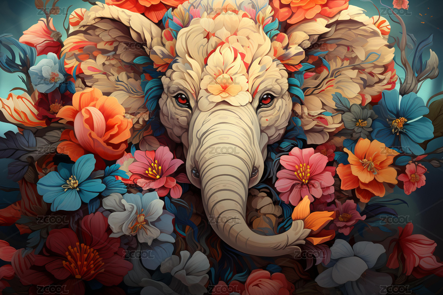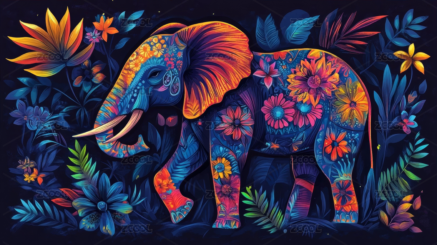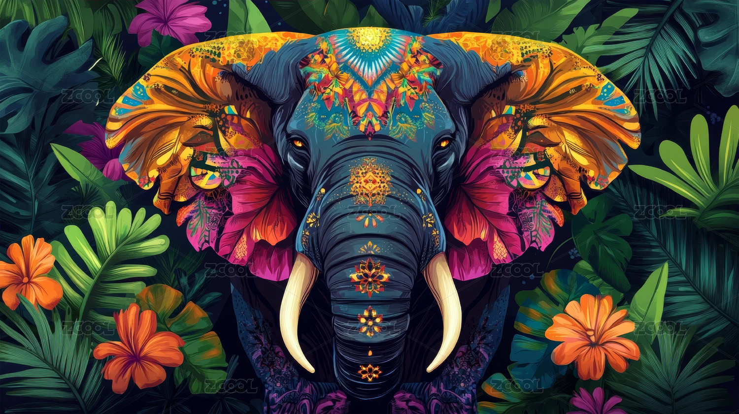 大象,迷幻,色彩,斑斓,艺术,插画,丛林,热带,动物,自然