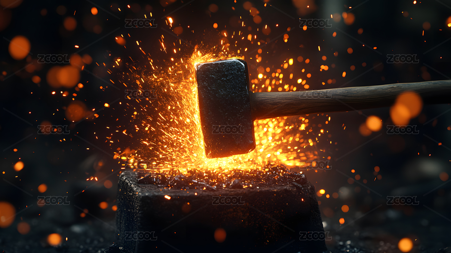 铁匠,锤子,打铁,火花,铁砧,手工,工艺,力量,工业,工作
