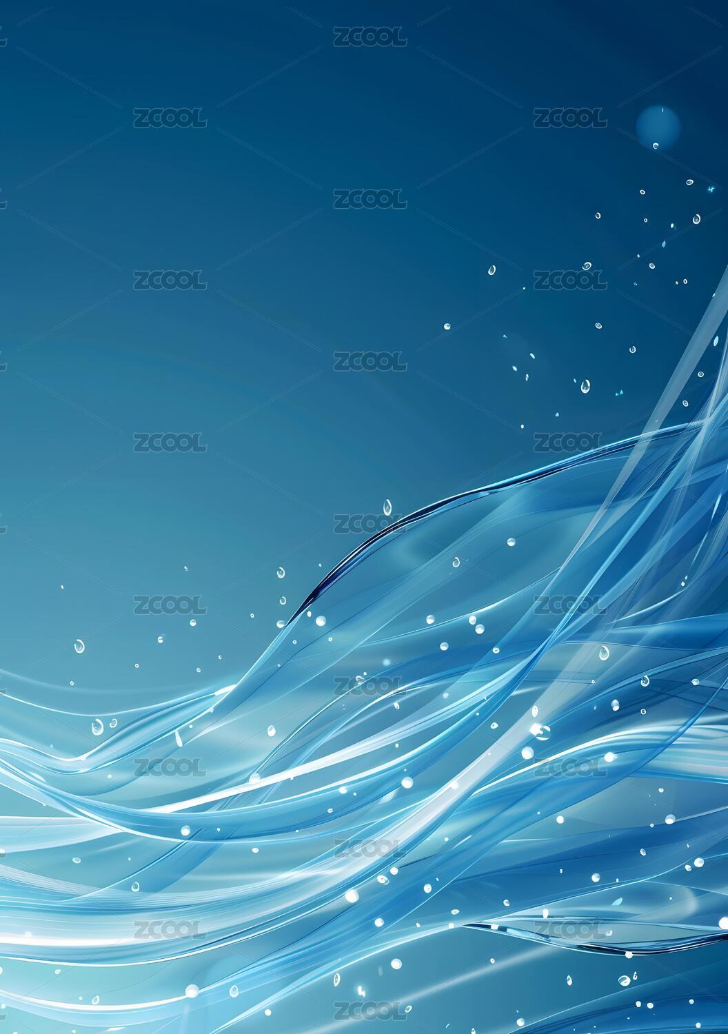 蓝色飘逸波浪抽象背景