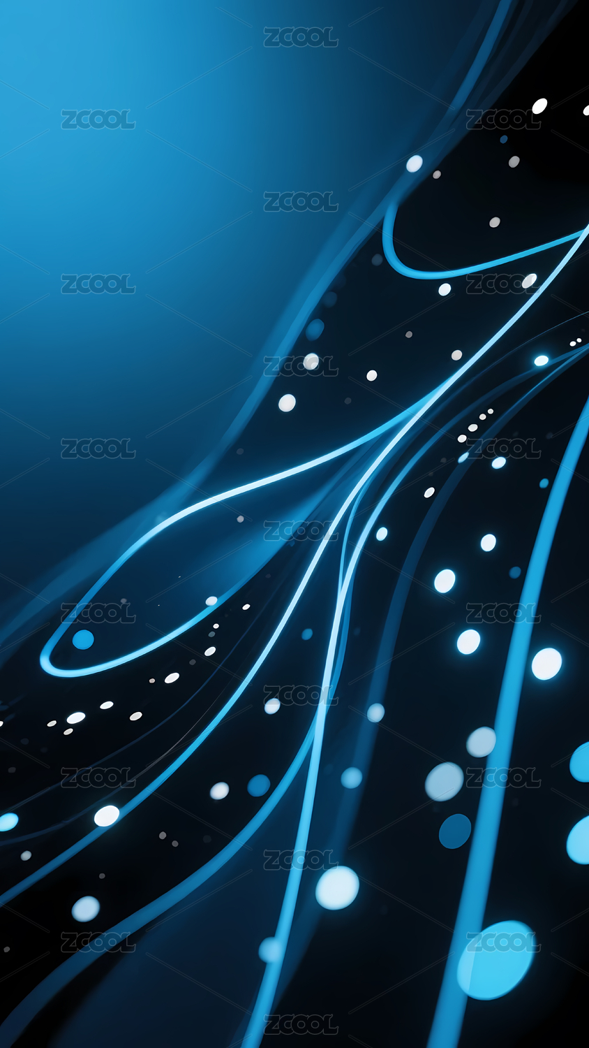 蓝色背景上的流动线条与光斑