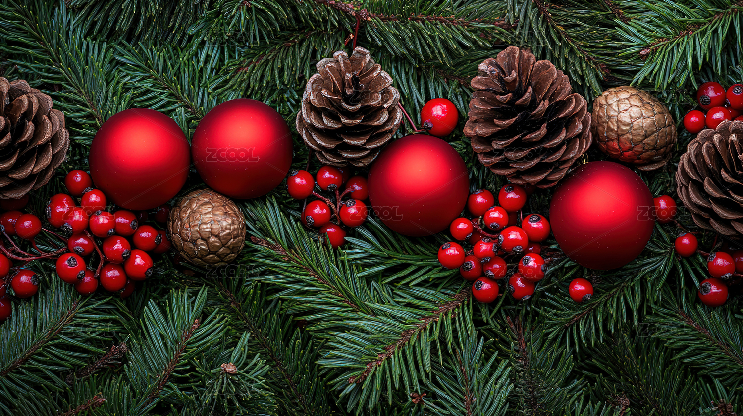 松枝松果圣诞装饰场景