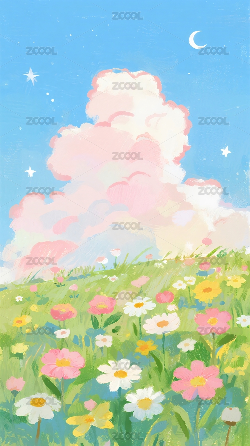 花海云朵天空美丽景色