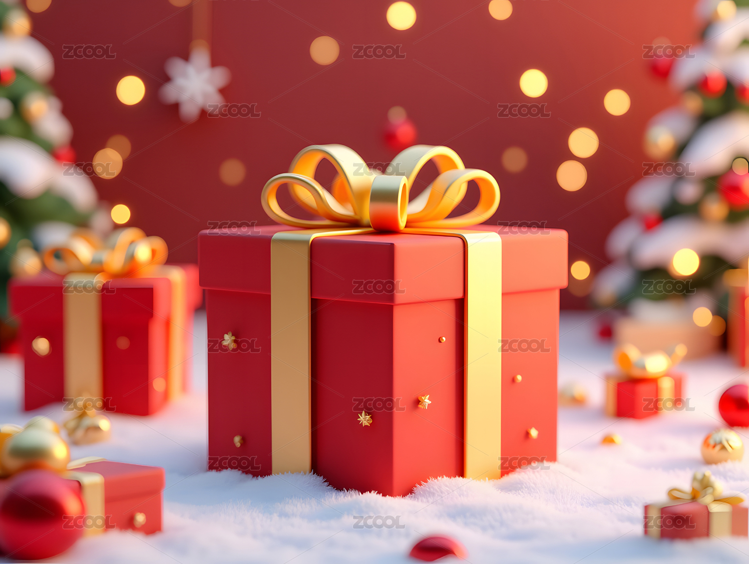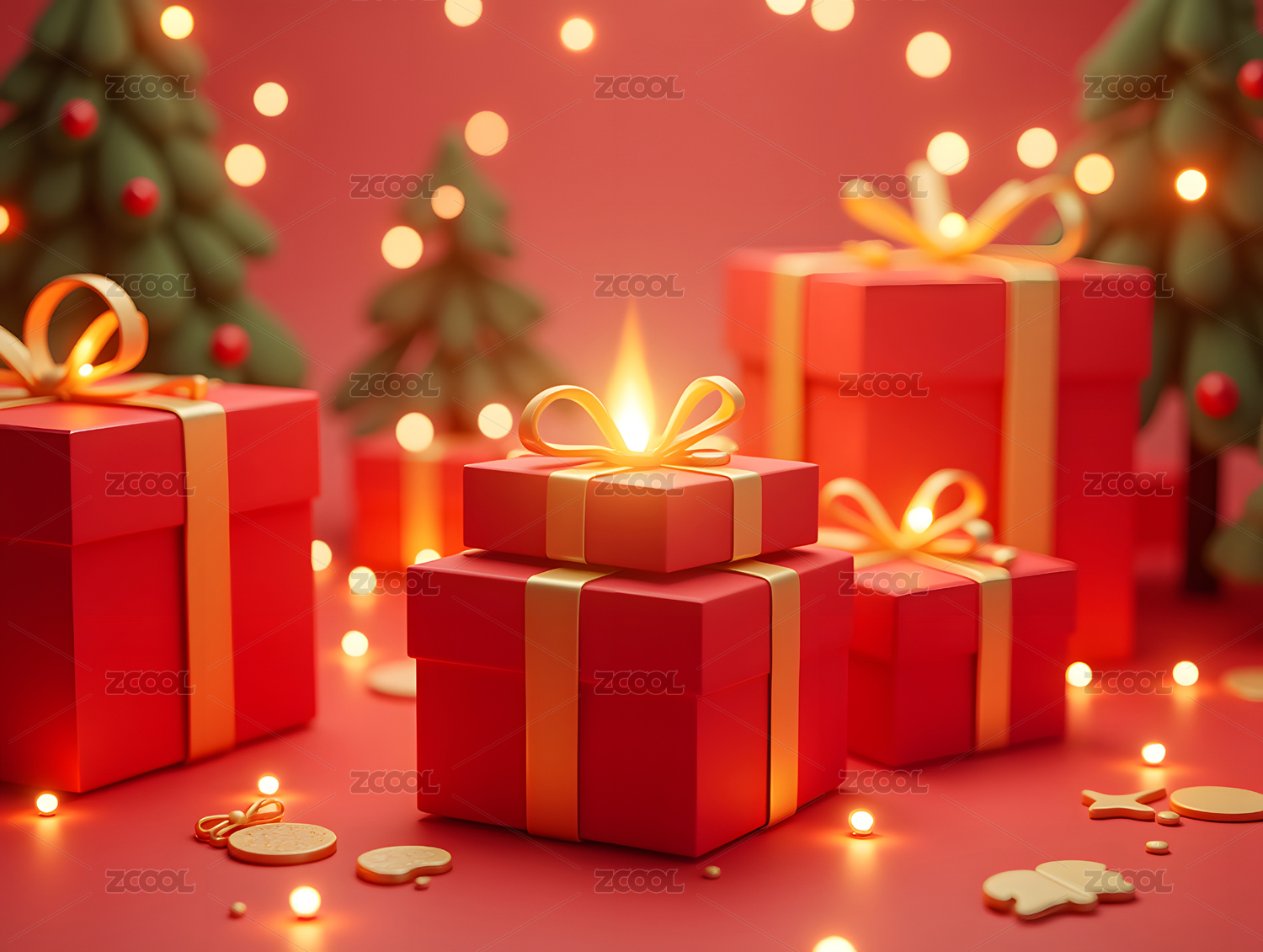 红色礼盒喜庆商业壁纸场景