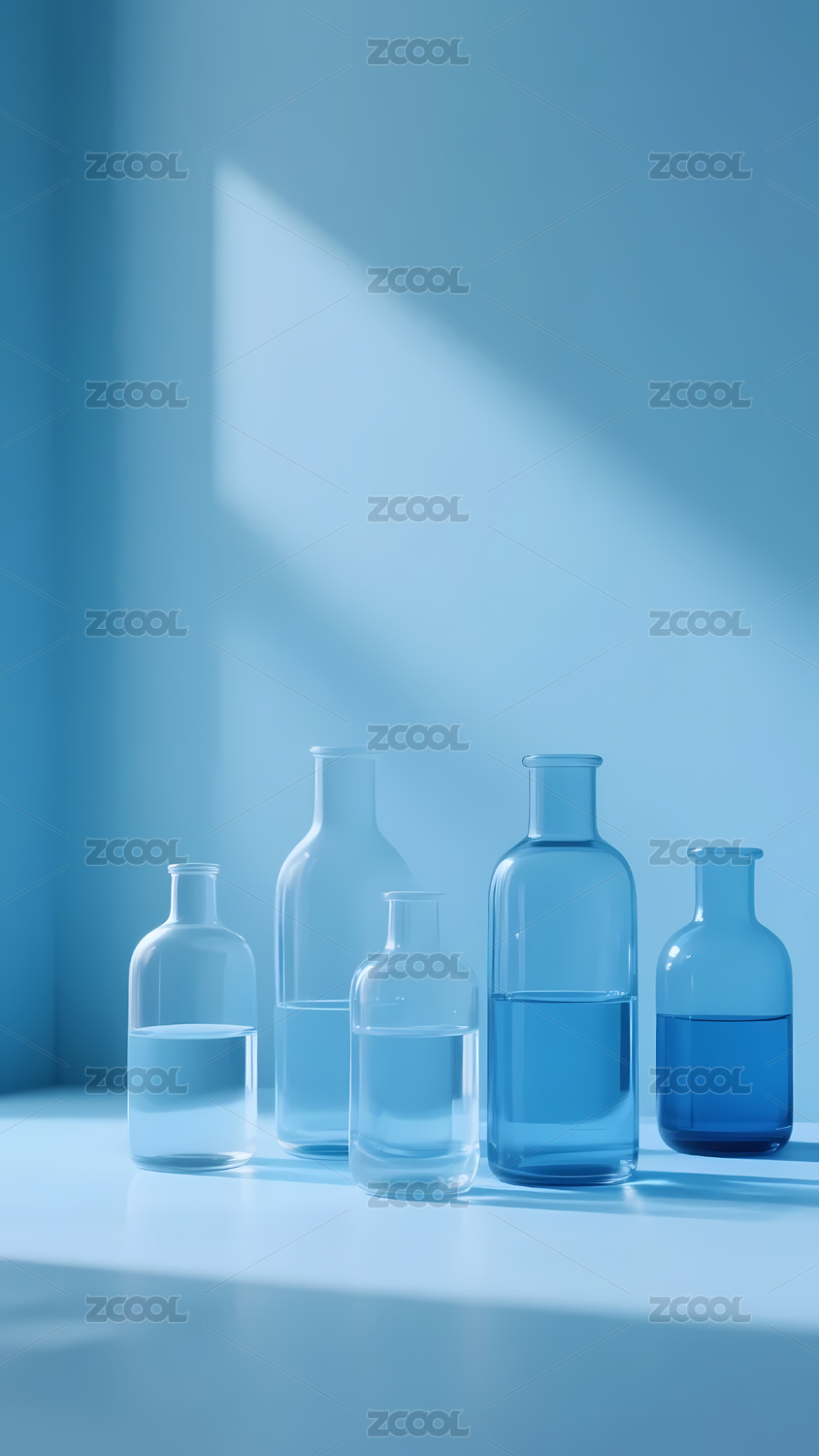 明亮,设计,现代,白色,简洁,浅蓝,化妆品,瓶罐,干净,陈列