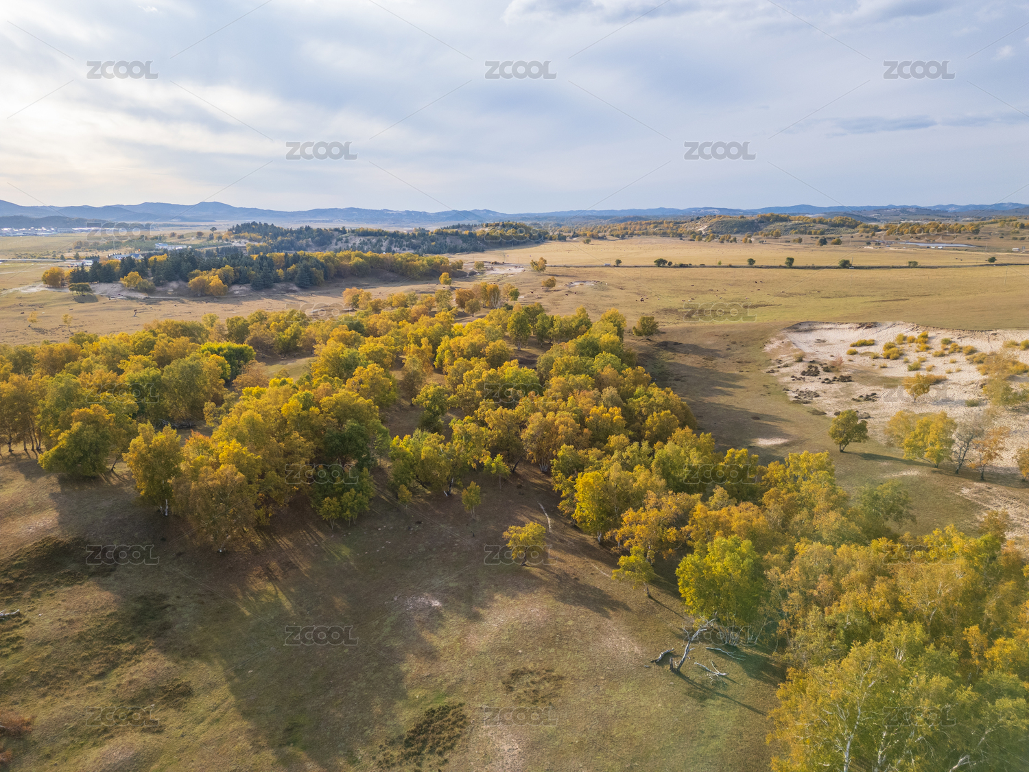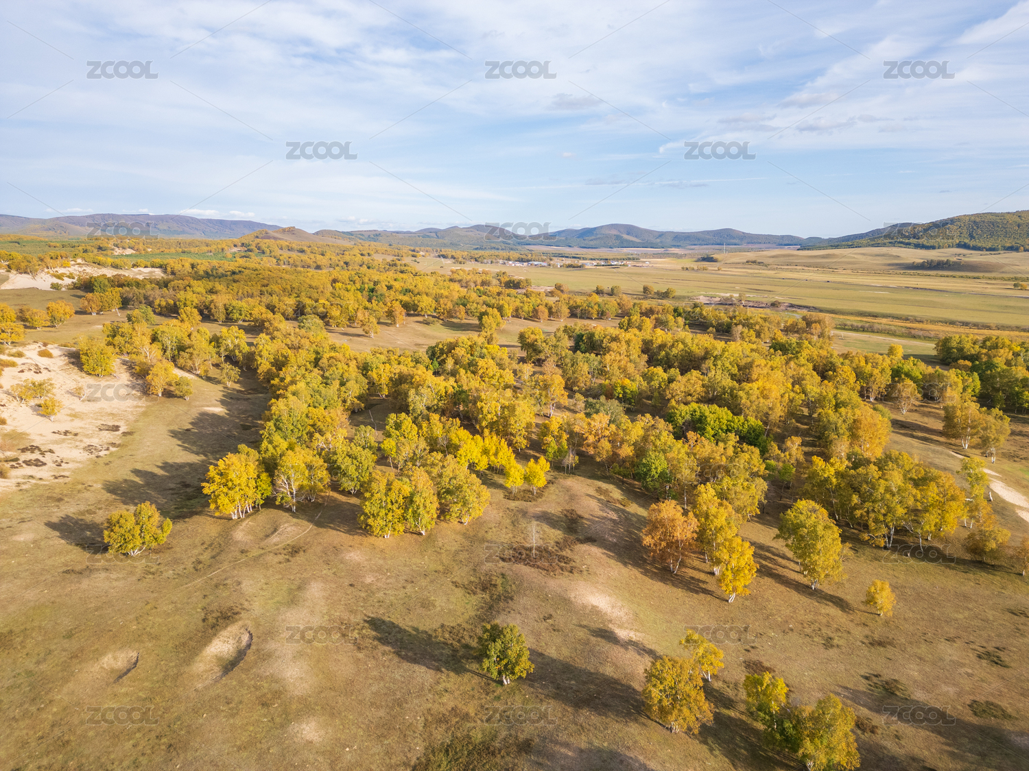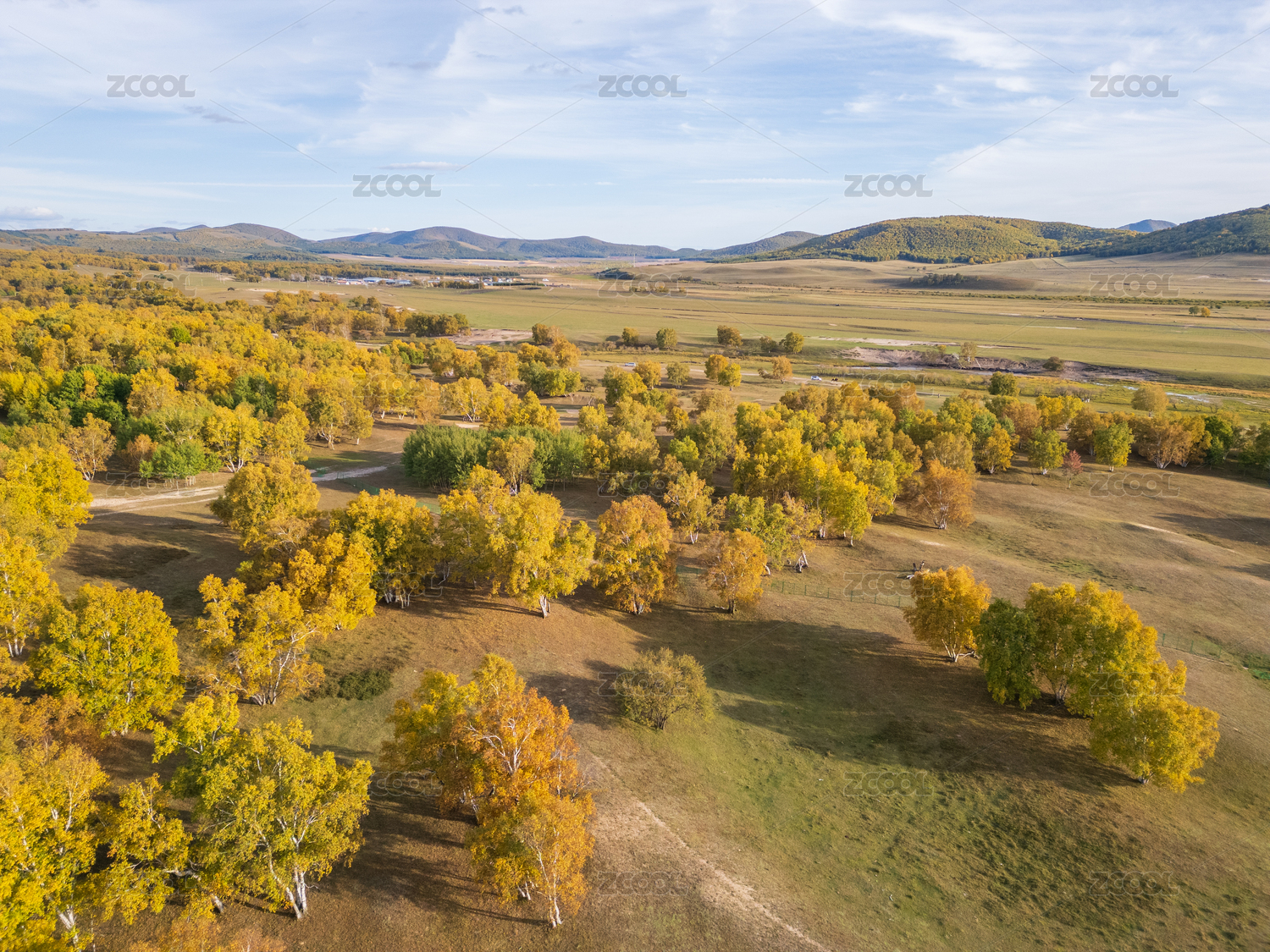 内蒙古,北方,赤峰,中国,克什克腾旗,乌兰布统,欧式草原,航拍,草原,桦树
