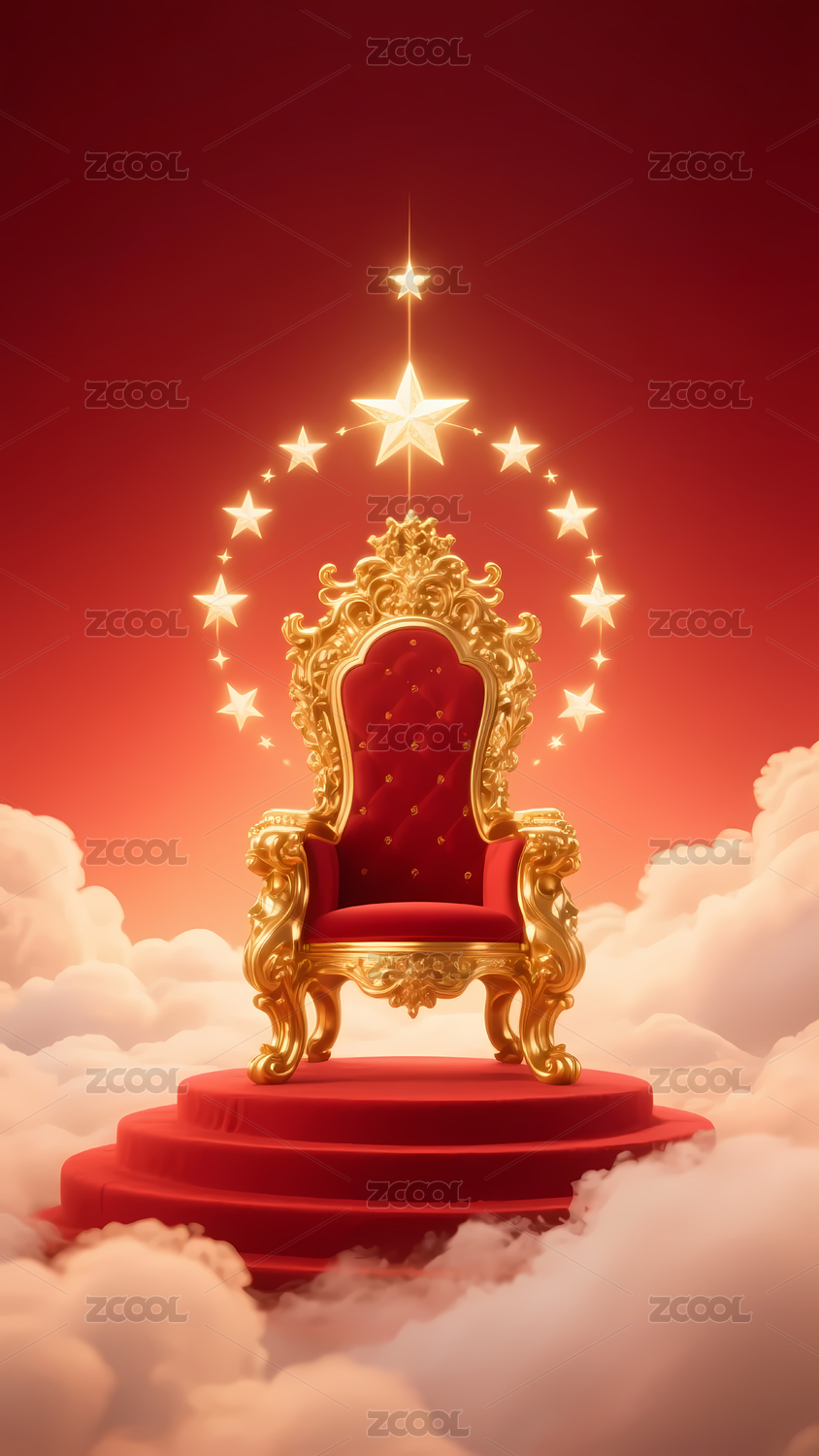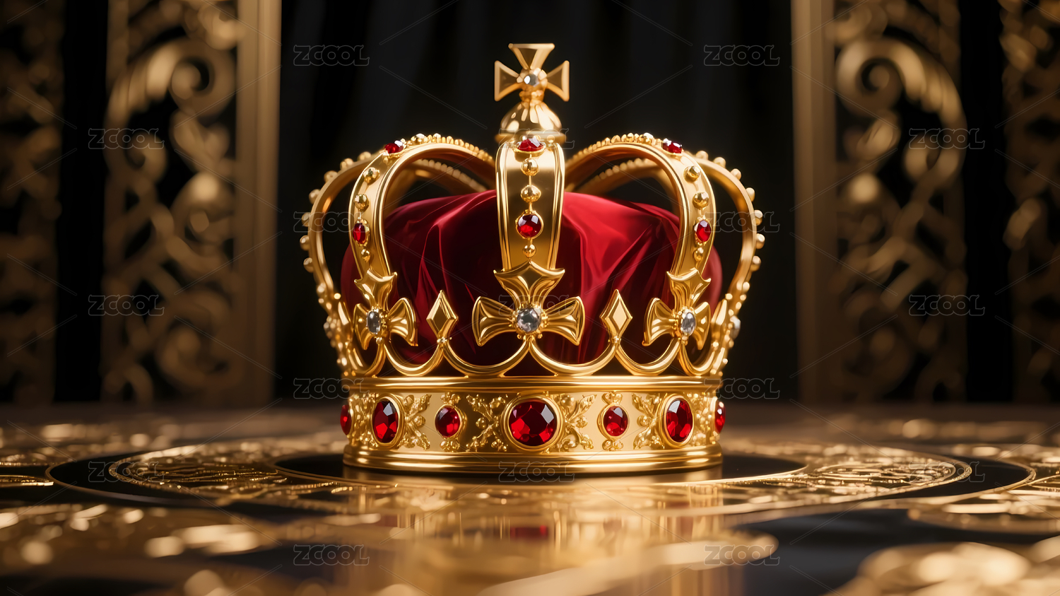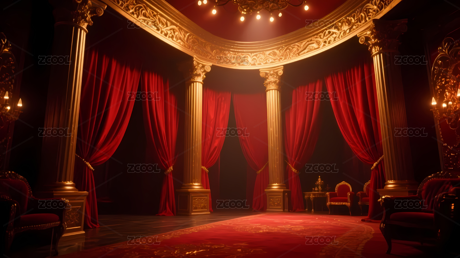 华丽宝座背景,金色装饰与红色帷幕