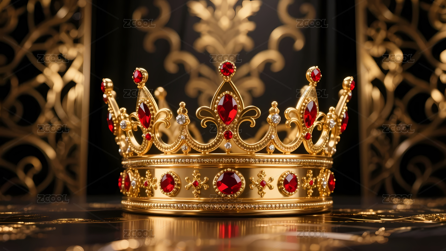 金色王冠镶嵌红色珍珠