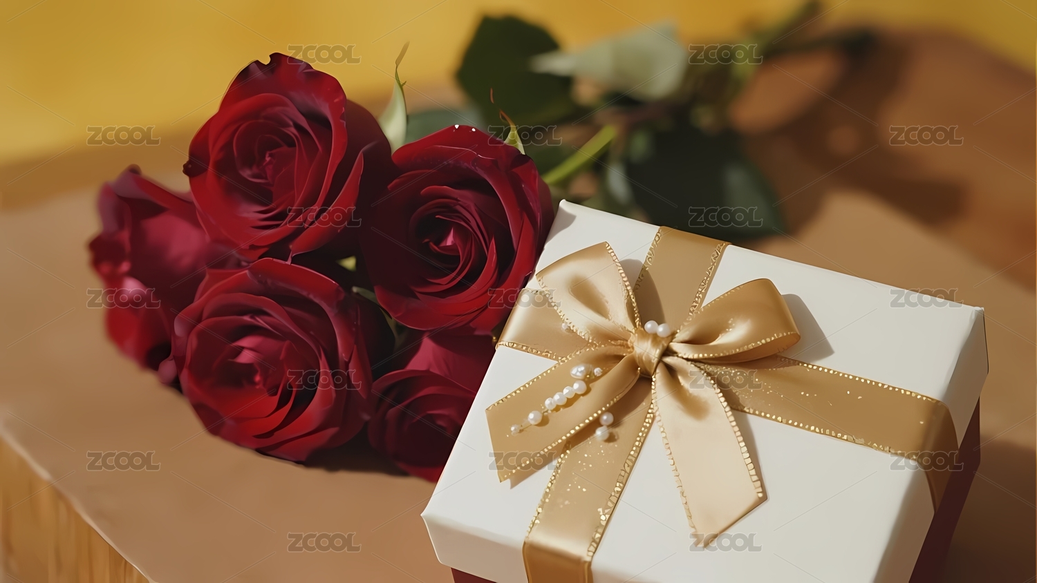 玫瑰,红色,浪漫,花朵,装饰,优雅,温馨,室内,桌面,礼盒