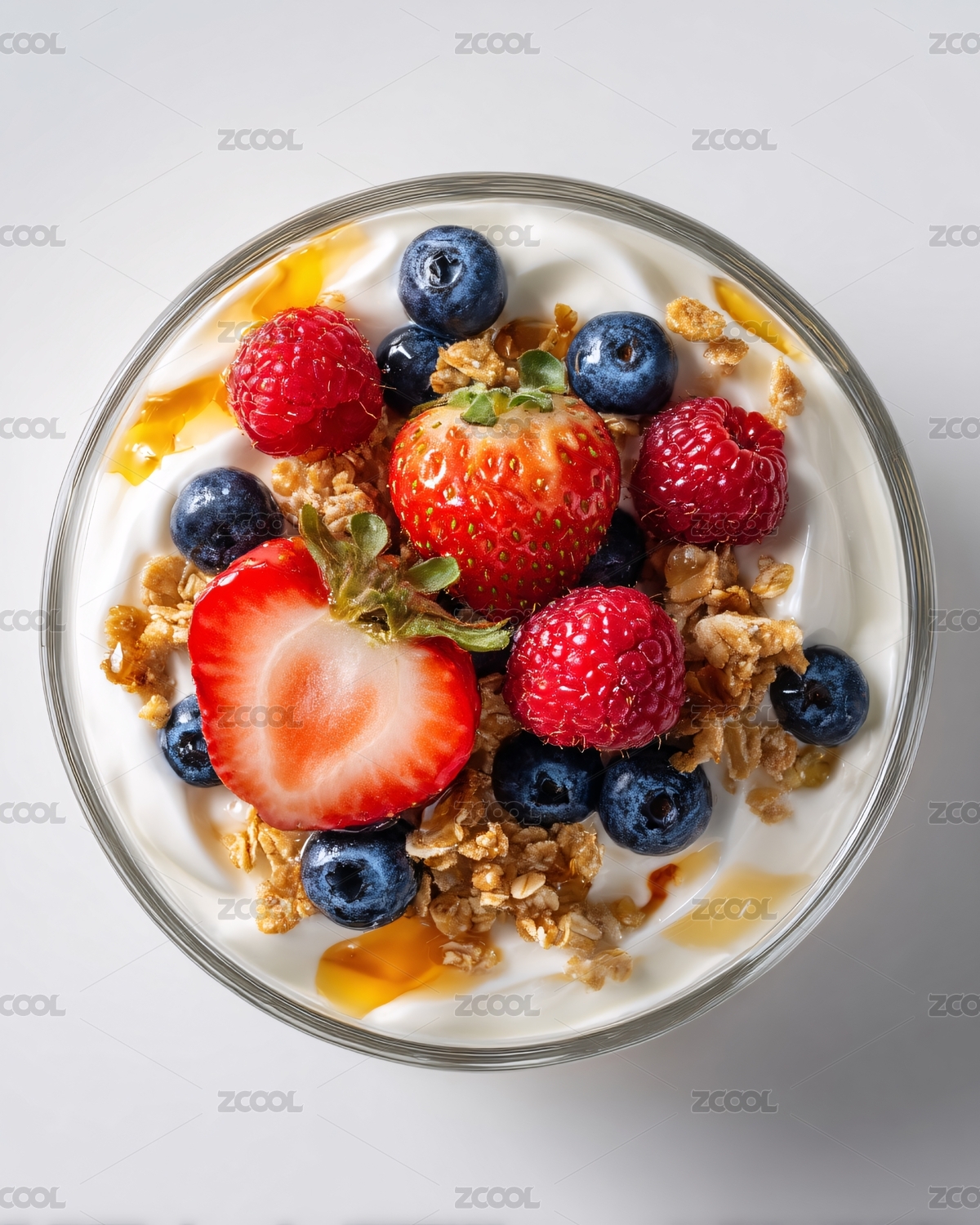 健康营养早餐,新鲜的水果和燕麦片,以及牛奶