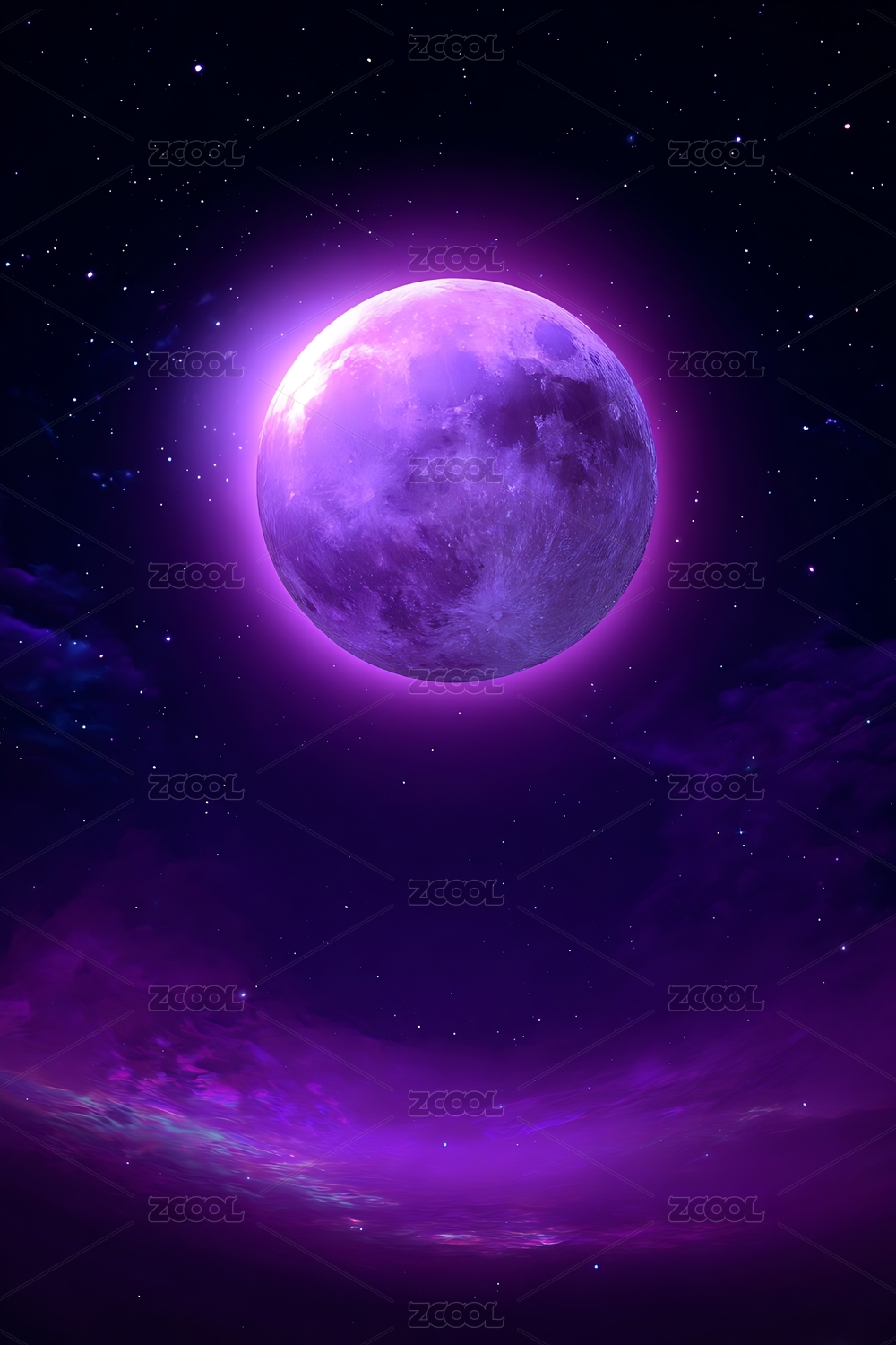 紫色月亮星空