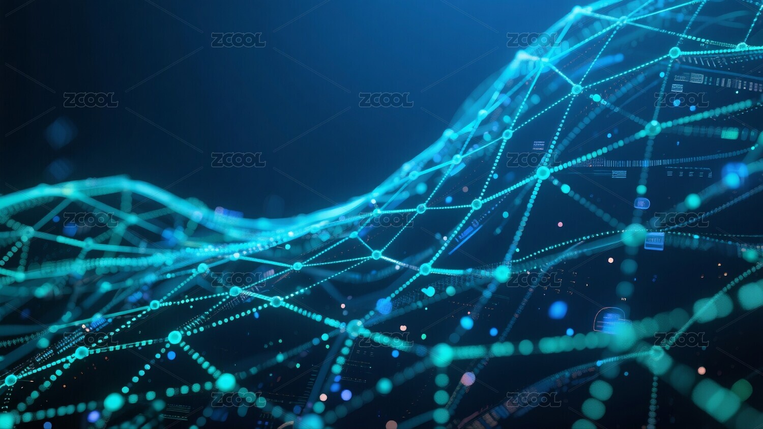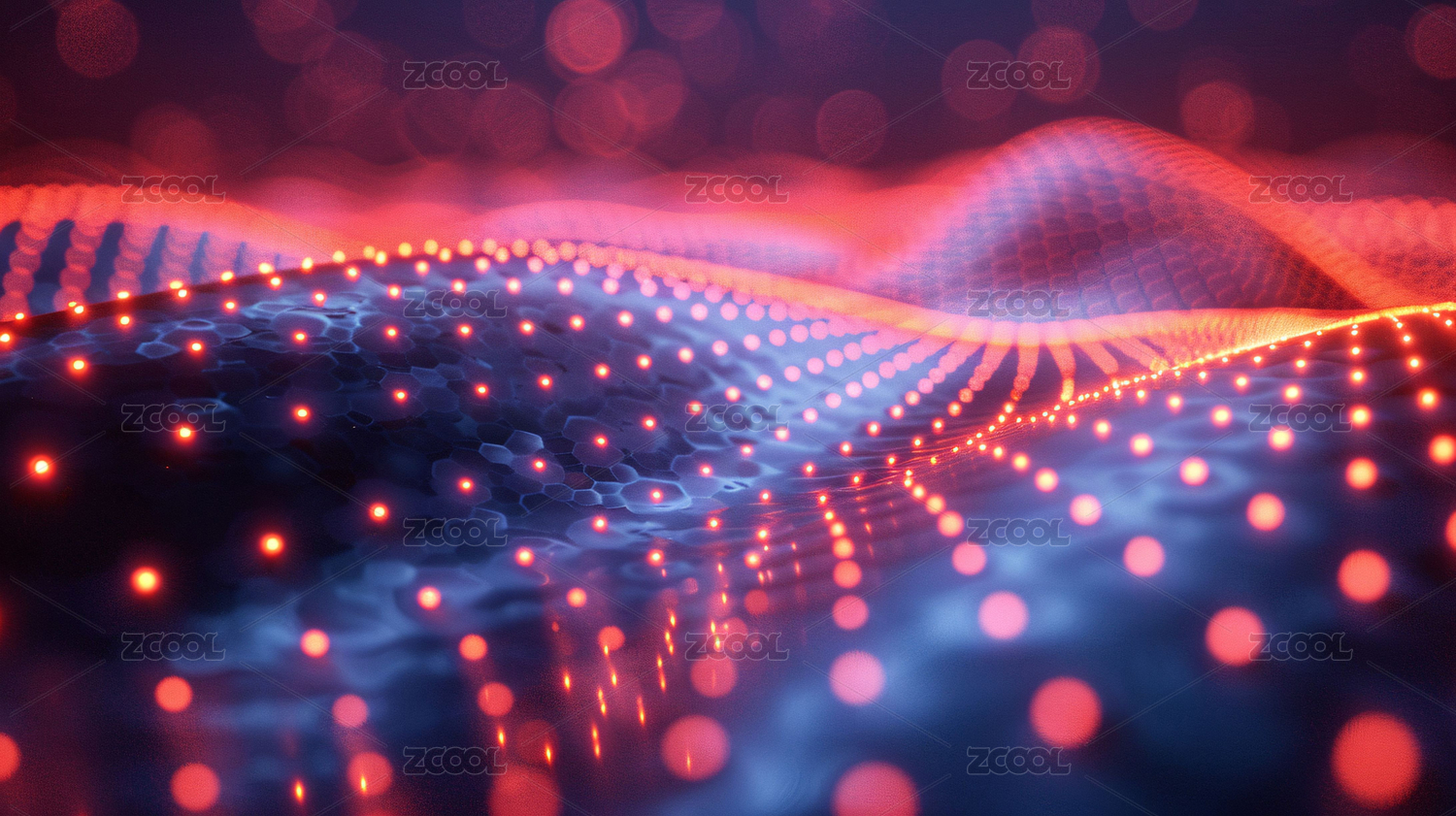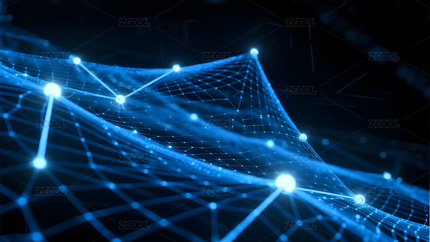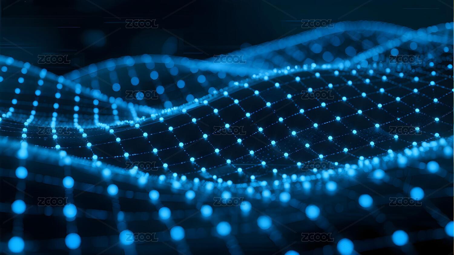 网格,波浪,光点,线条,连接,网络,科技,数字,虚拟,未来