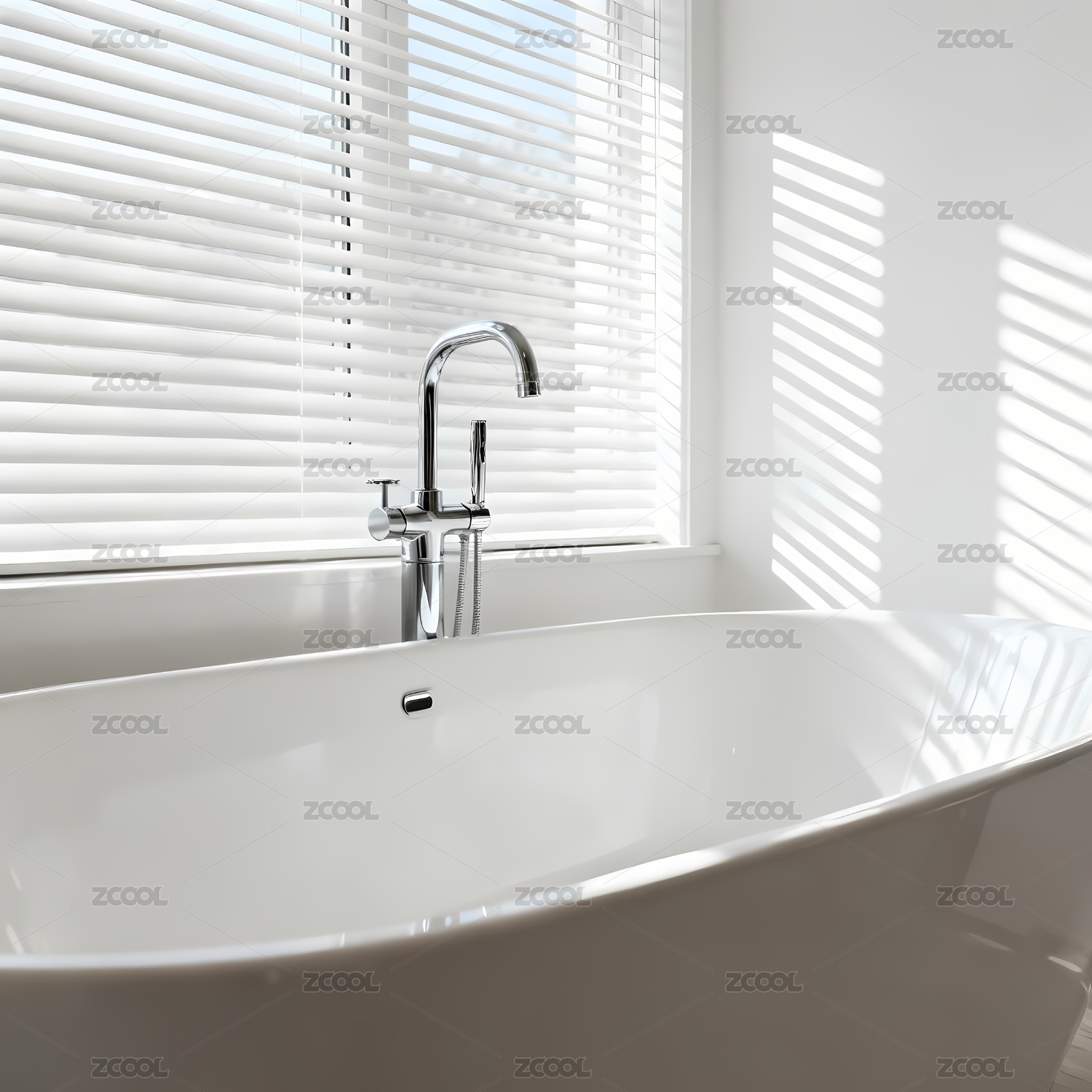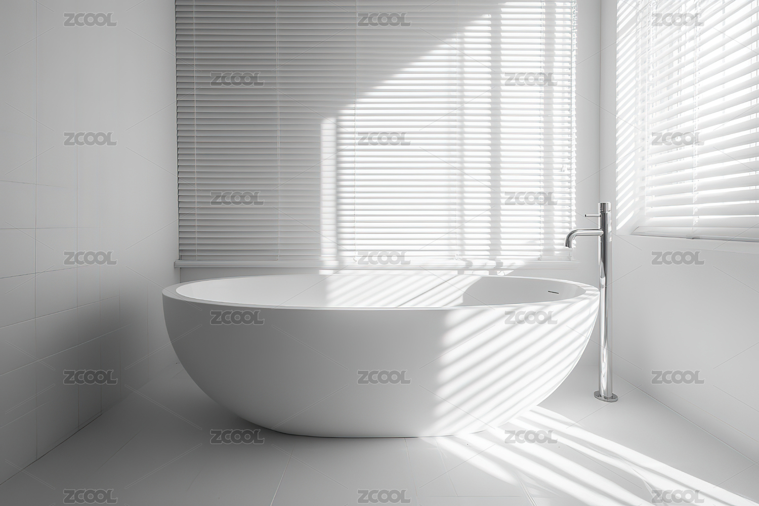 现代风格的时尚浴缸,浴室内部白色墙壁附近