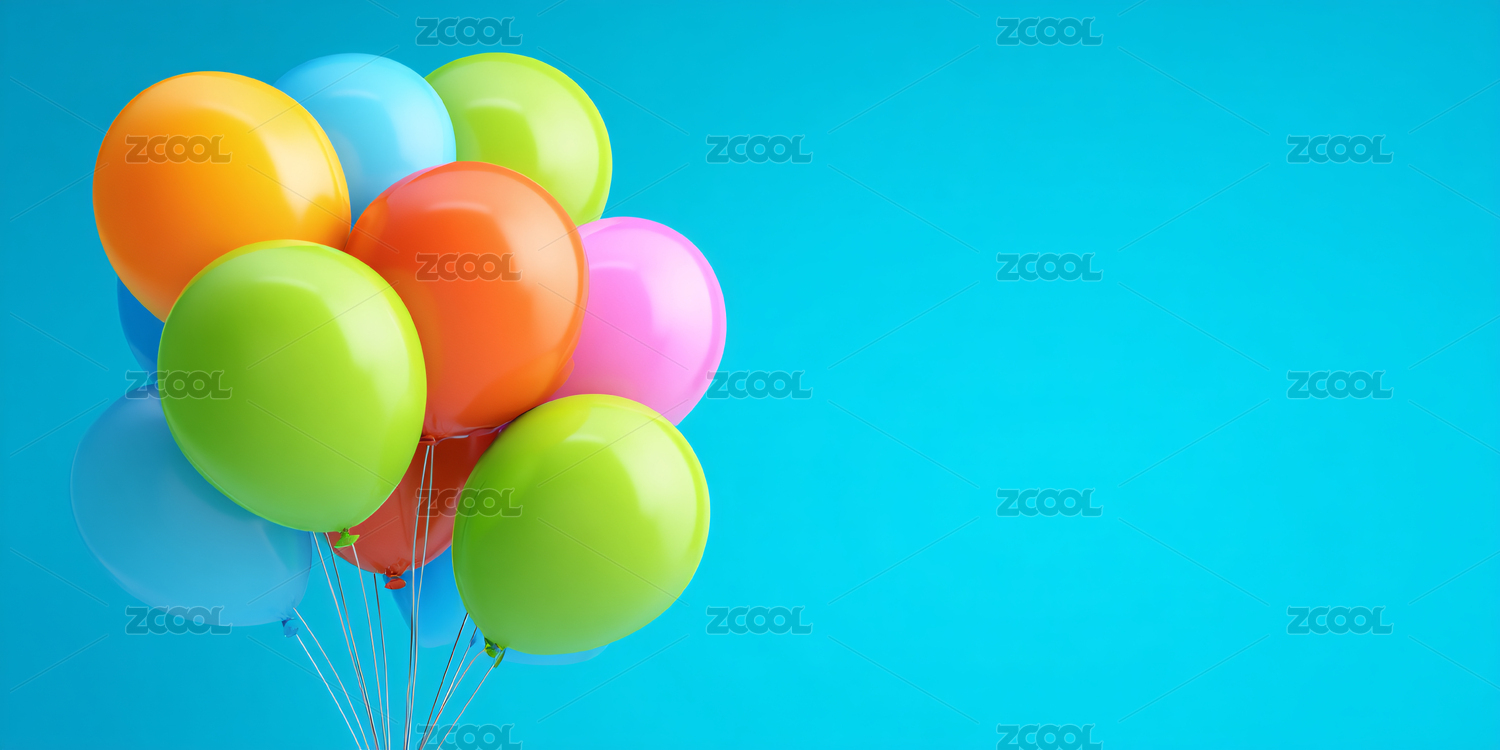 彩色气球簇立于浅蓝背景