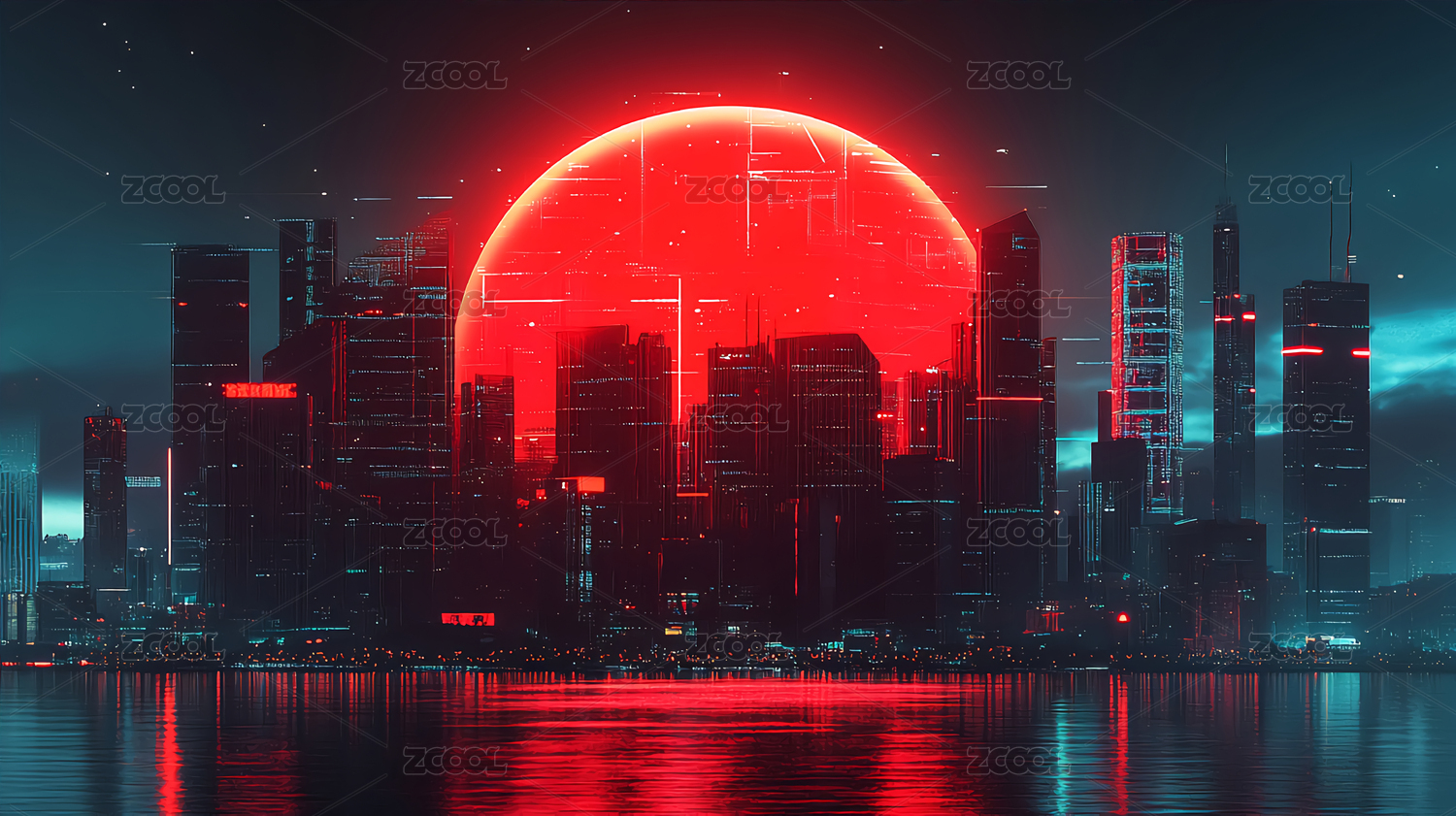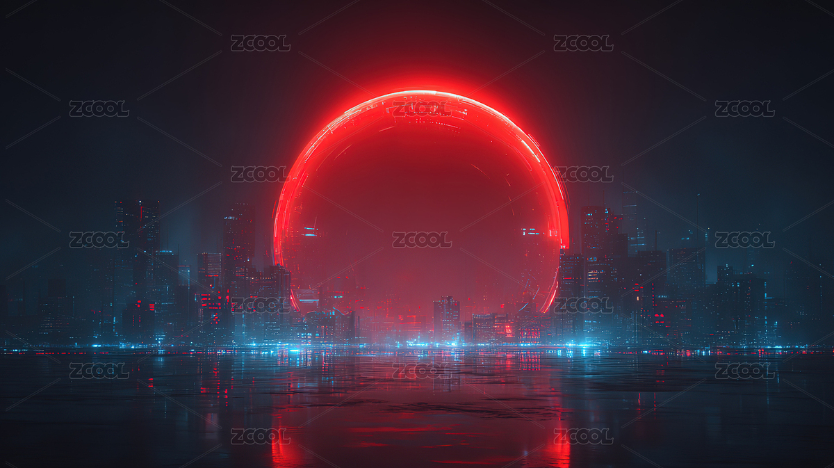 红色光环映照未来城市