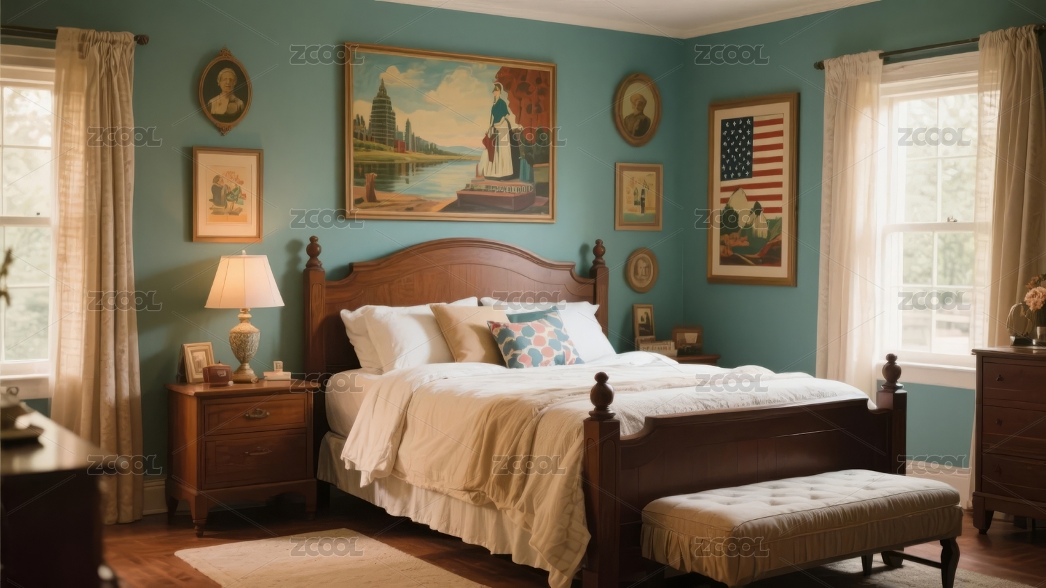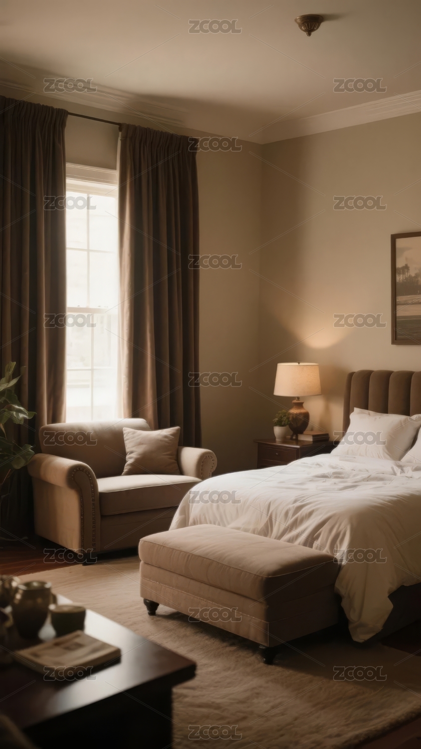 卧室,阳光,木质家具,窗户,窗帘,床,床头柜,椅子,梳妆台,地毯