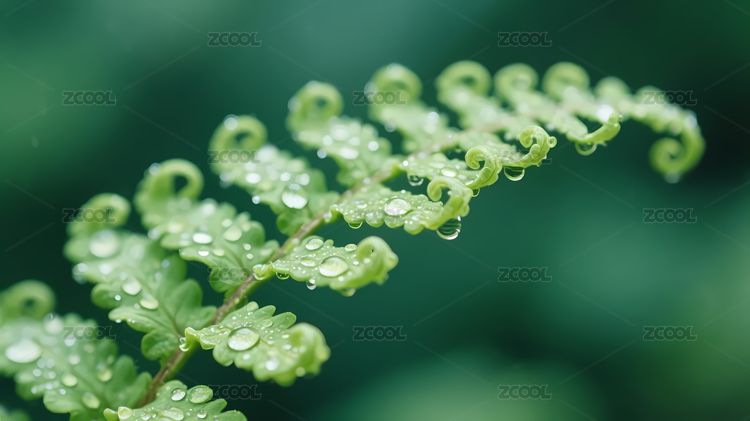蕨类新芽水滴特写