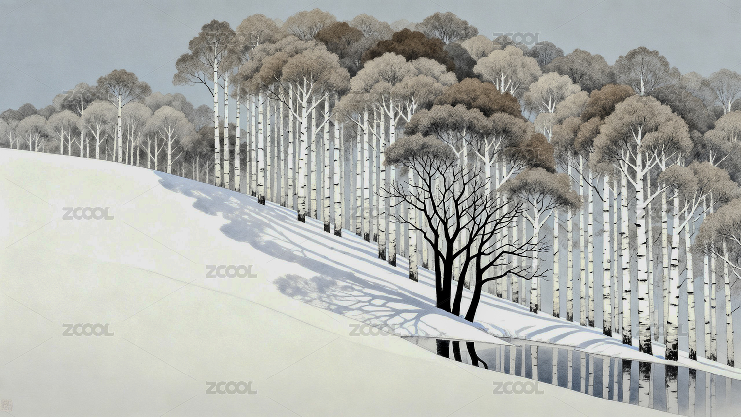雪景树林插画