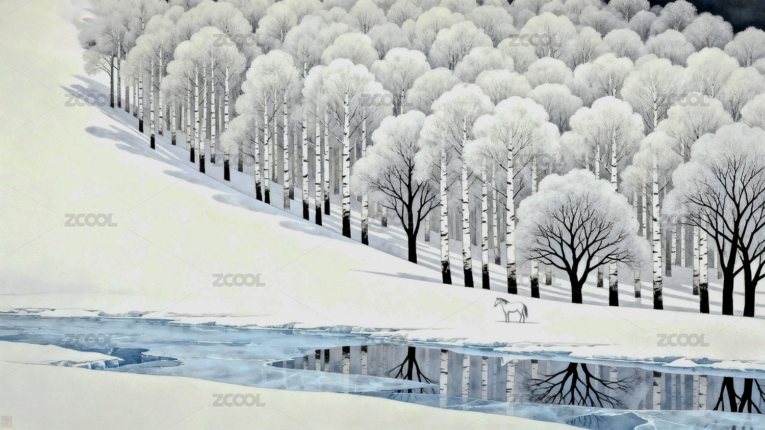 冬日雪地河流