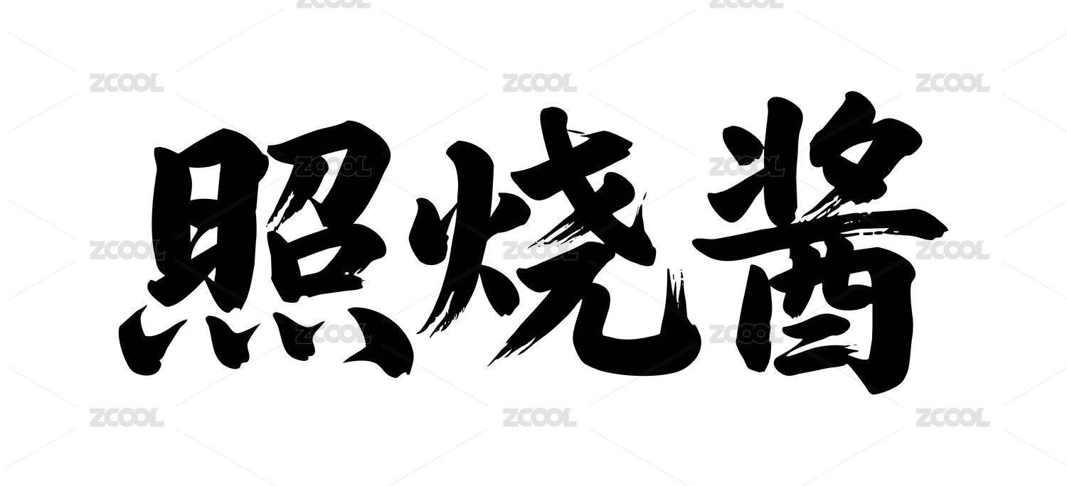 照烧酱,照烧汁,调味酱,调味料,佐料,毛笔字,书法,中国风,手写,传统
