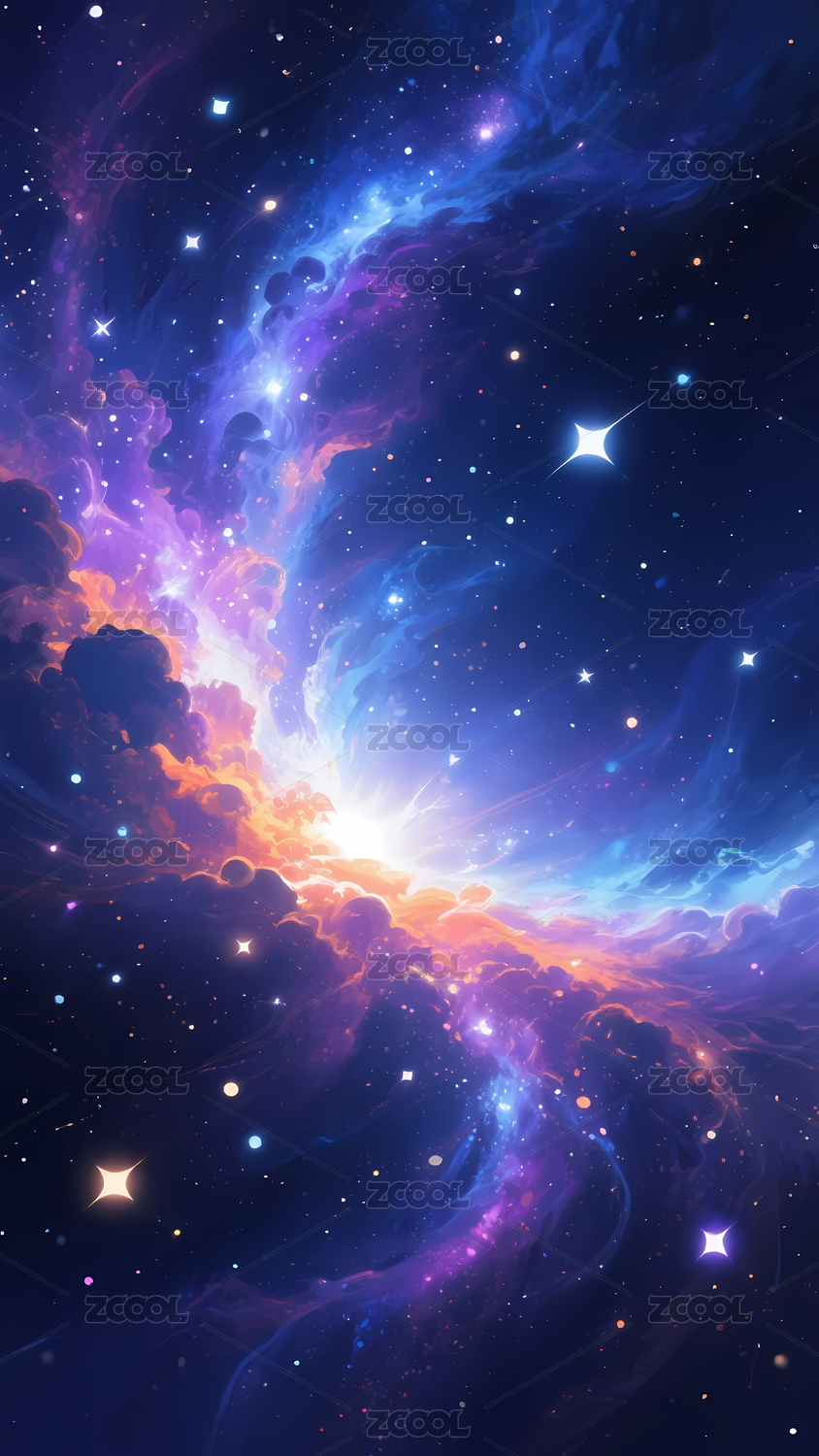 蓝色,星云,星星,紫色,黑色,宇宙,深邃,星系,光芒,壮丽