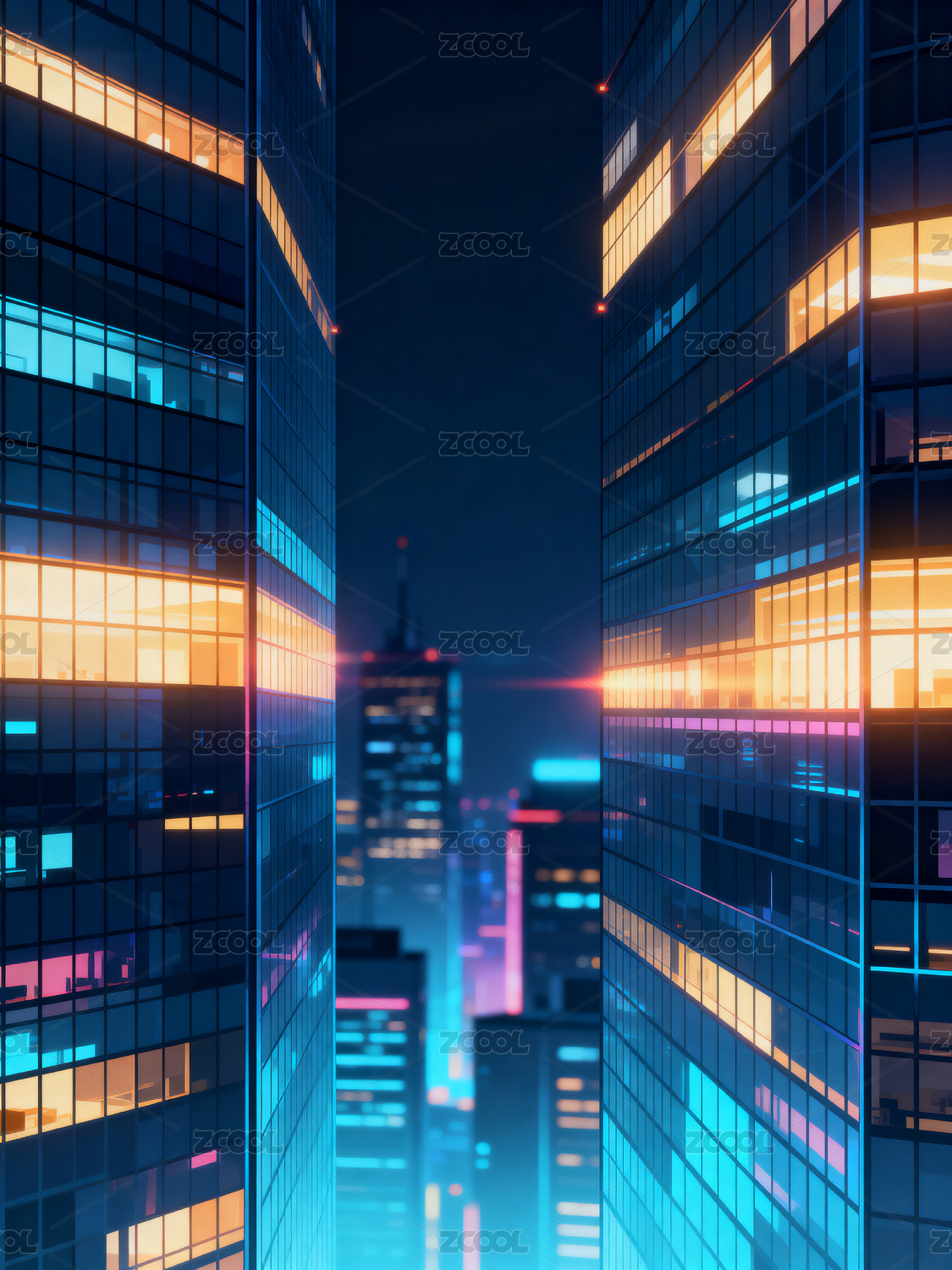 玻璃的摩天大楼建筑物蓝红渐变商业背景