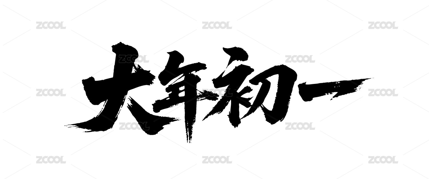 大年初一,初一,元日,中国风,传统,毛笔字,书法,手写,字体,矢量