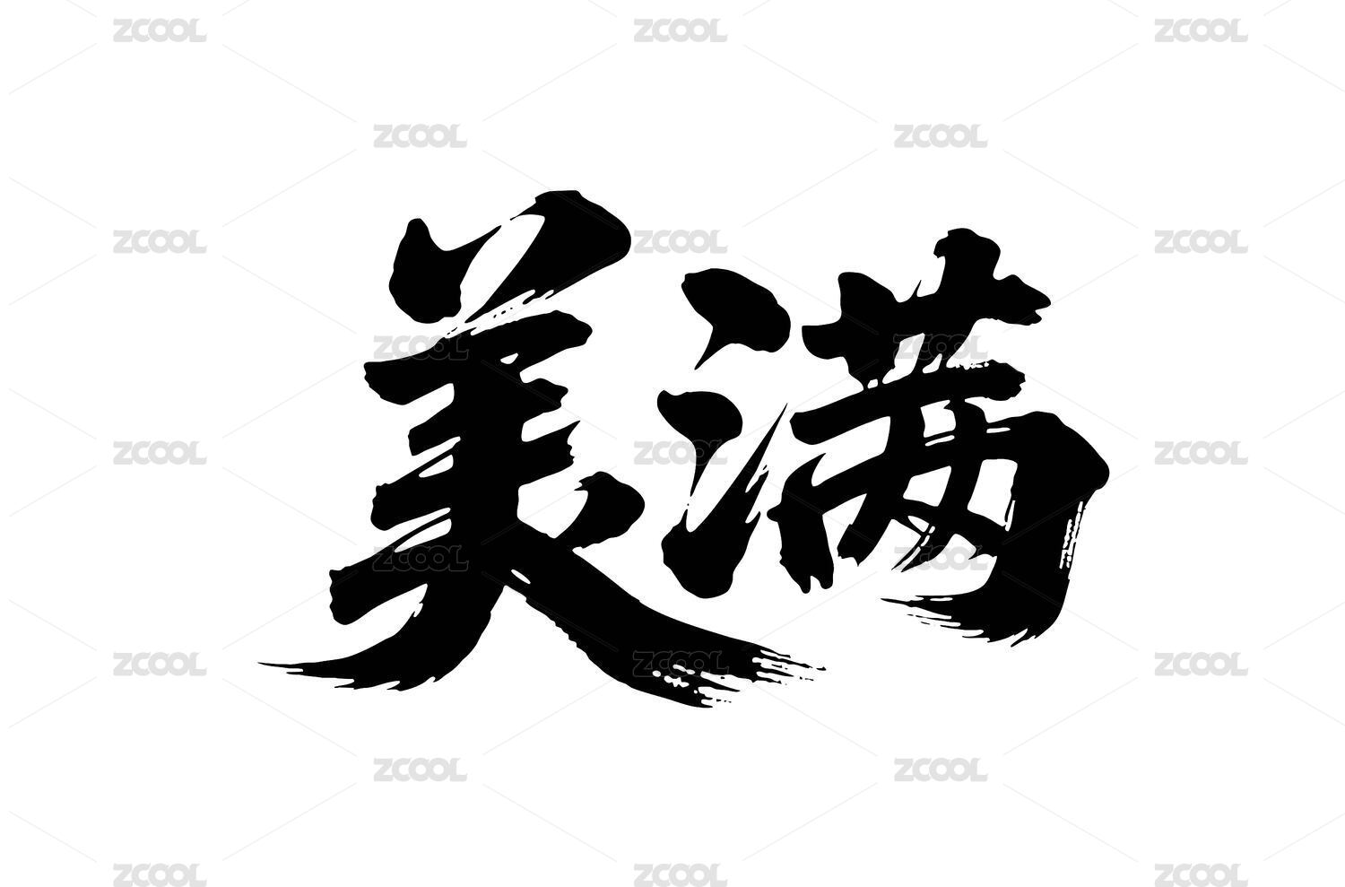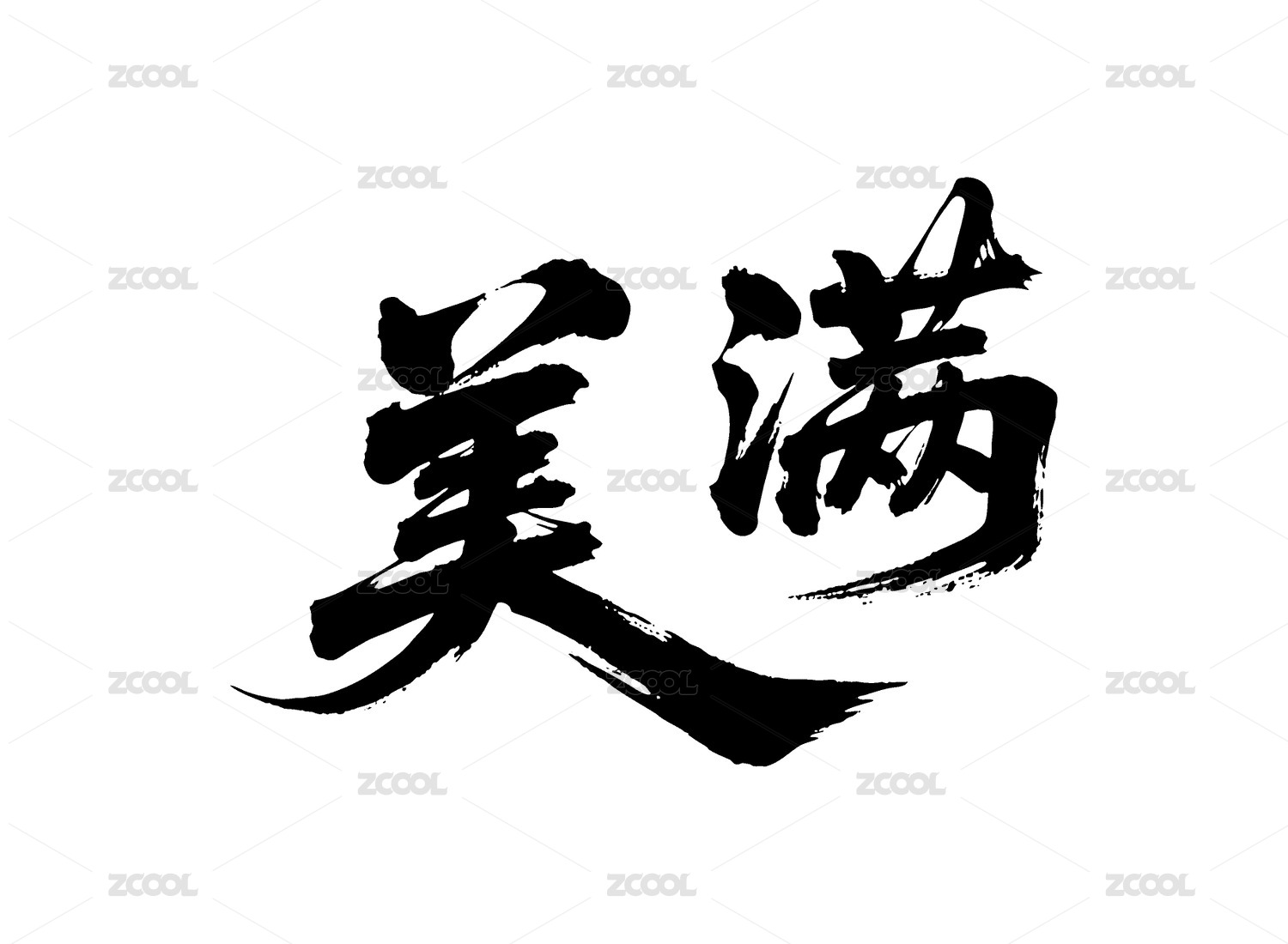 美满,幸福,圆满,中国风,传统,毛笔字,书法,手写,字体,矢量