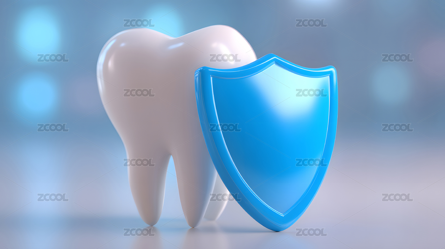 牙齿,模型,科技感,牙科,防护,白色,蓝色,发光,护盾,医疗