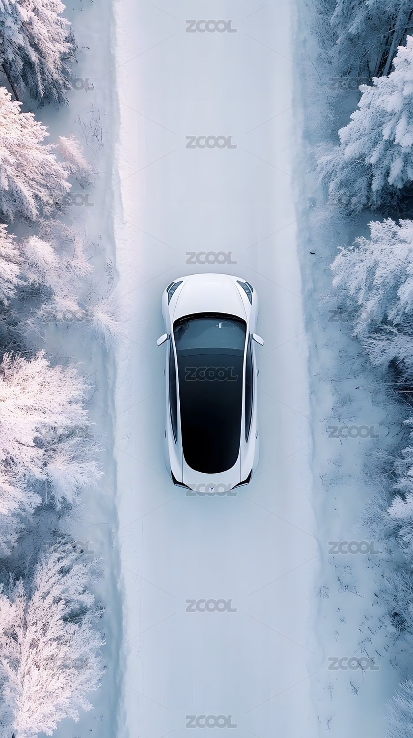 积雪道路上行驶的汽车