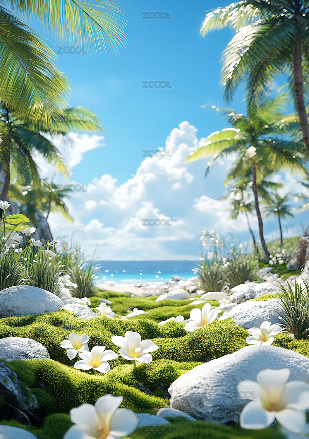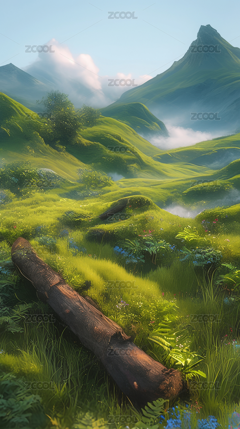 满是青草和苔藓毛绒植物的儿童公园卡通插画