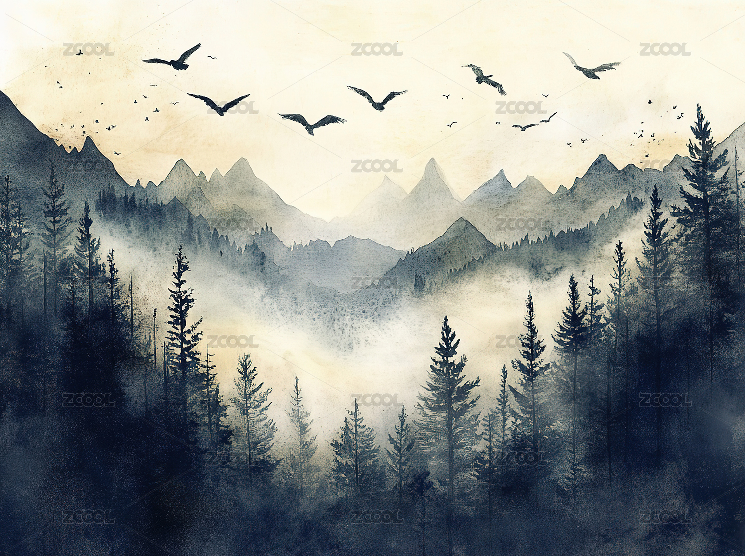 宁静,户外,环境,生态,自然,风景,创造力,插画,大气感,天空