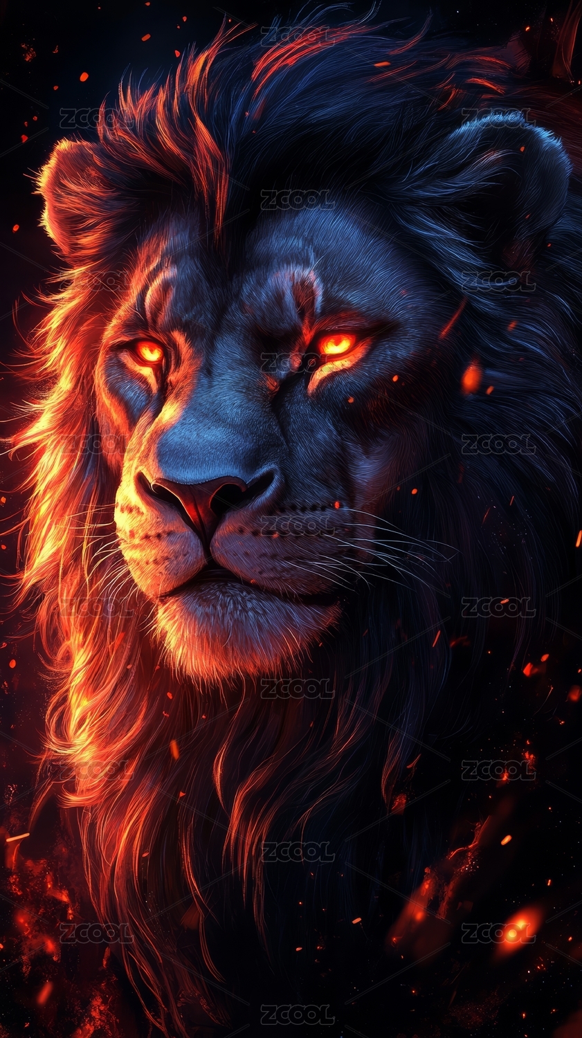 狮子,炫酷,火焰,眼睛,红色,光斑,神秘,威严,霸气,动物