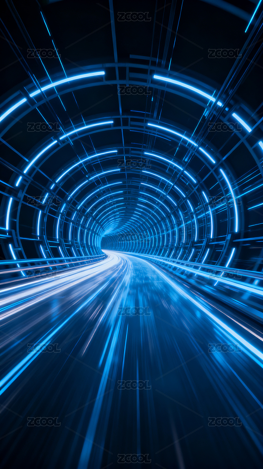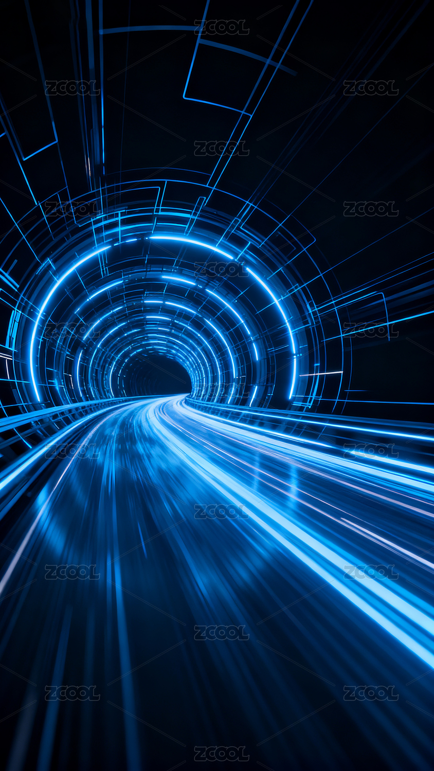 蓝色,抽象,曲线,科技,现代,光亮,隧道,光轨,动态,流线