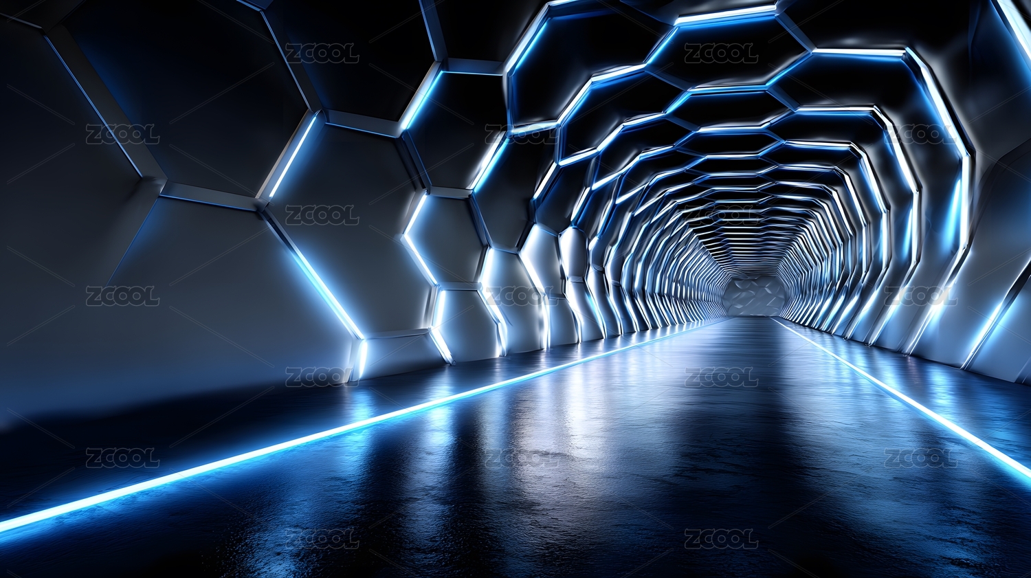 隧道,灯光,蓝色,几何,形状,未来,科技,通道,结构,现代