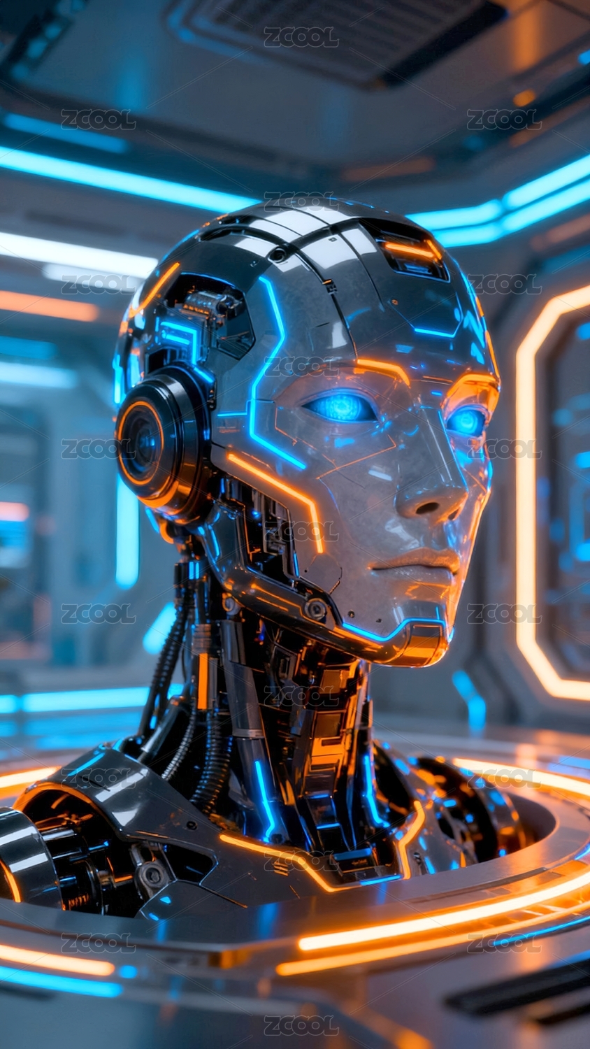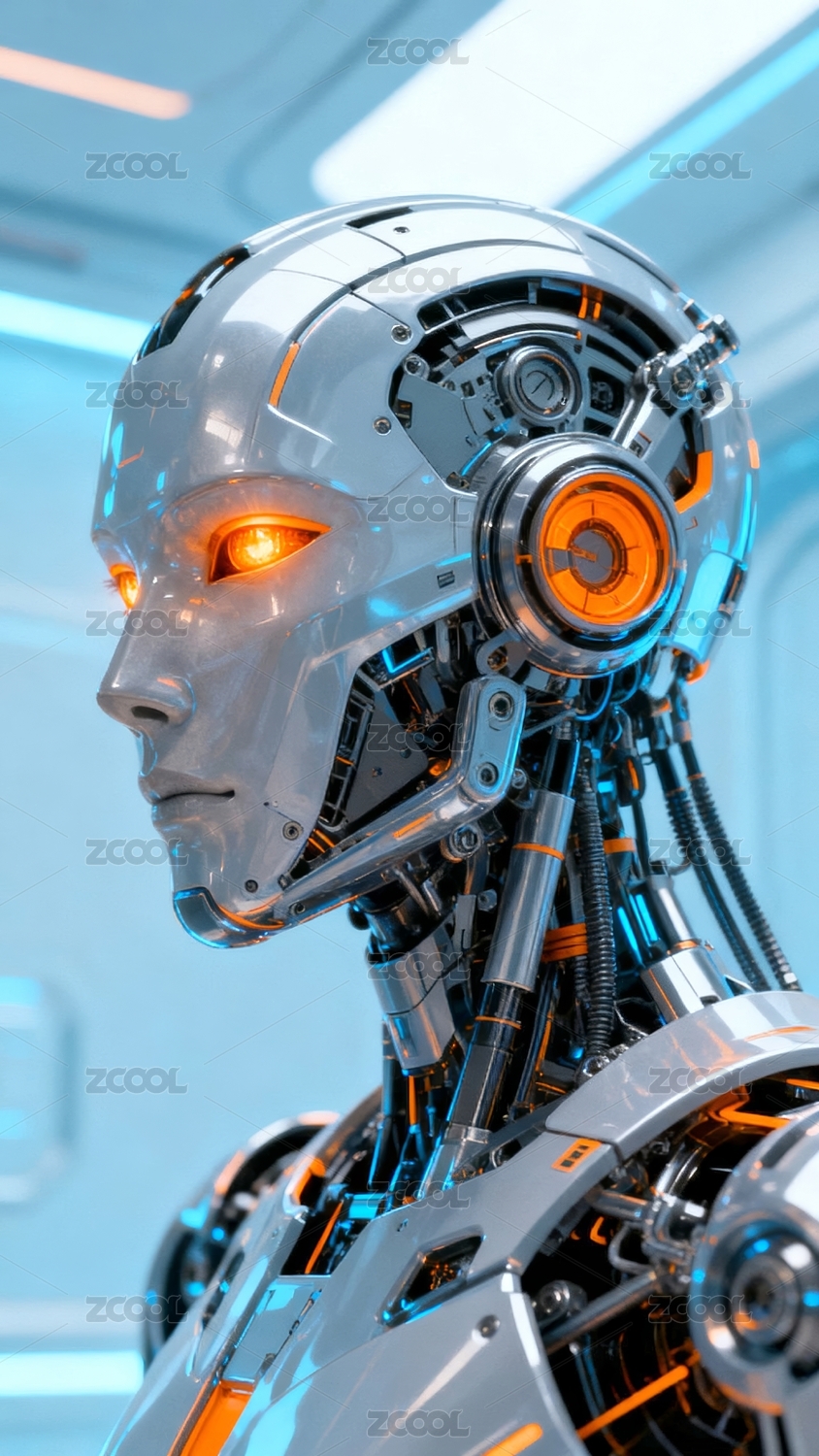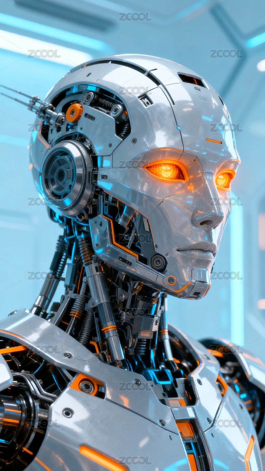 未来感机器人头部特写